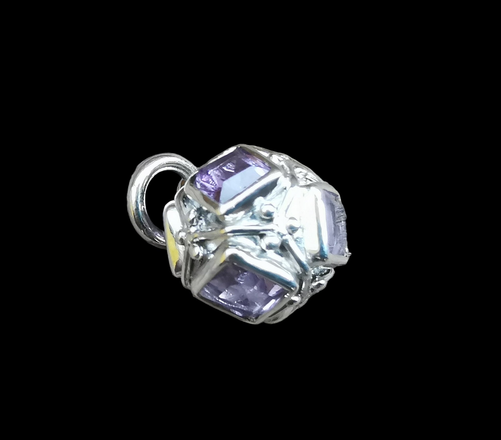 Ref.PD1089 - Silver pendant with Iconic Terra Prana Sphere geometry motif, and amethyst gemstones.