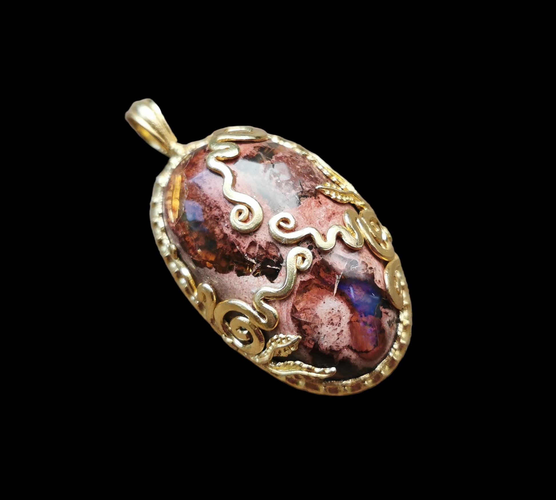 Ref.PD1125 - Gold plated on silver pendant with Boulder opal gem.