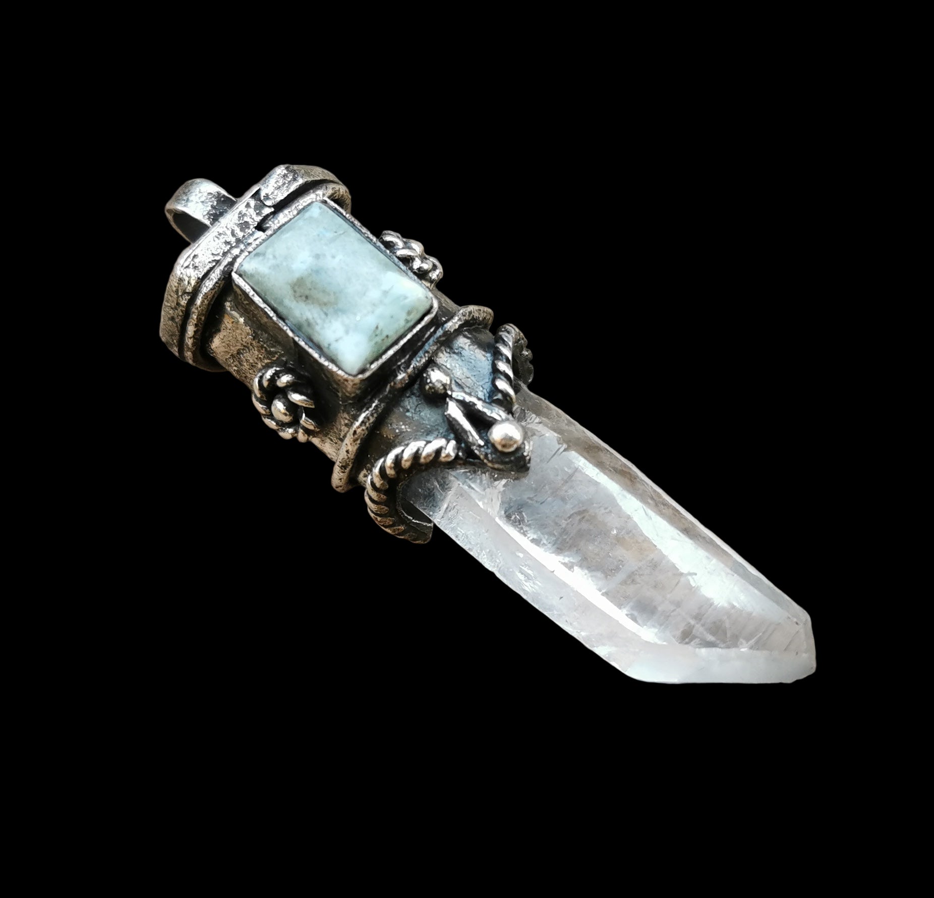 Ref.PD1134 - Silver pendant with laser quartz crystal. and larimar gemstone.