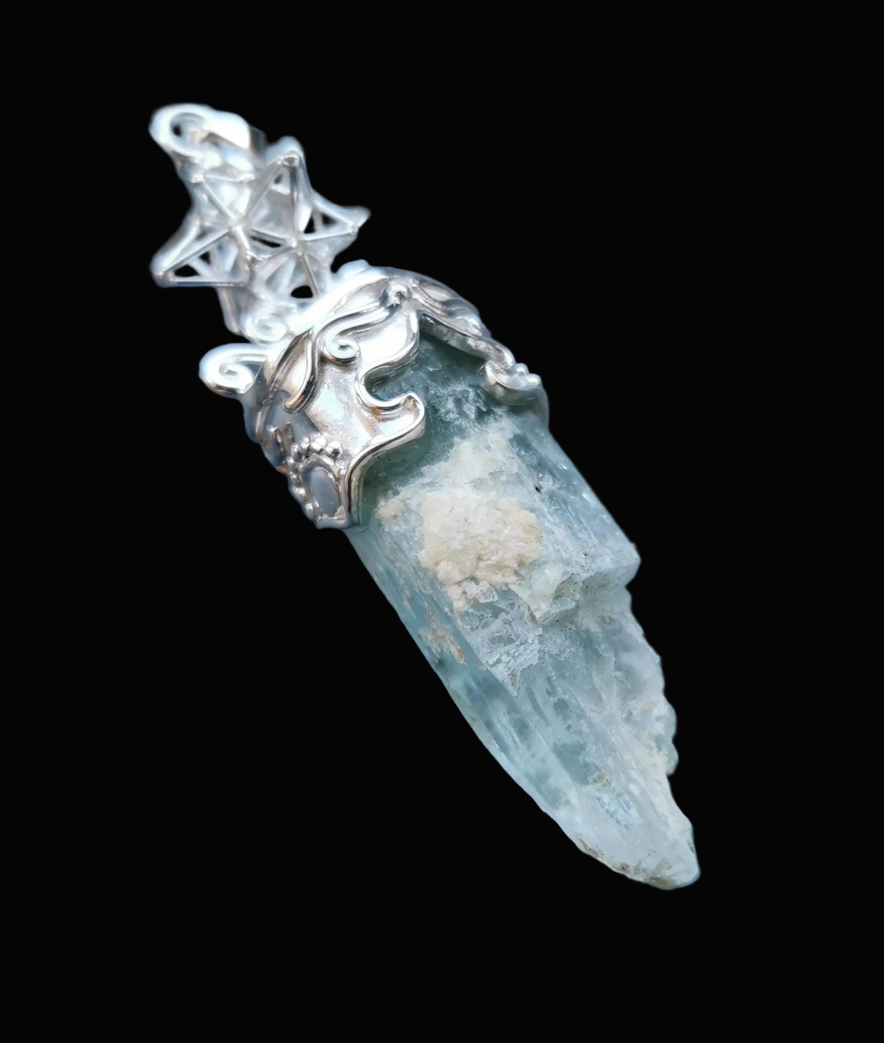Ref.PD1162 - Silver pendant with Heart Star geometry, and aquamarine gem.