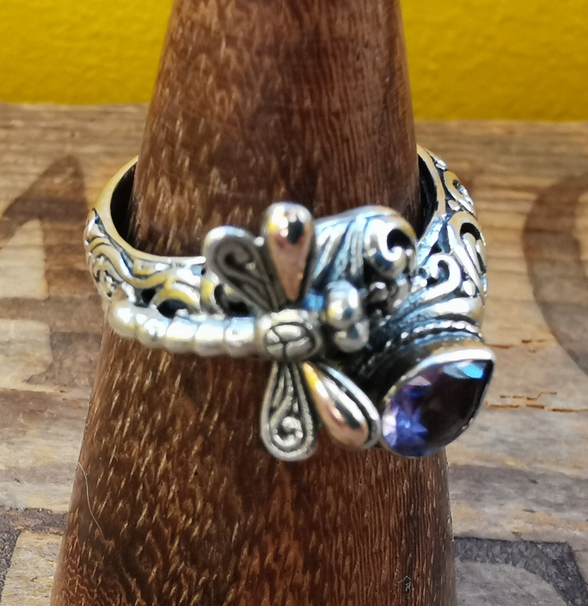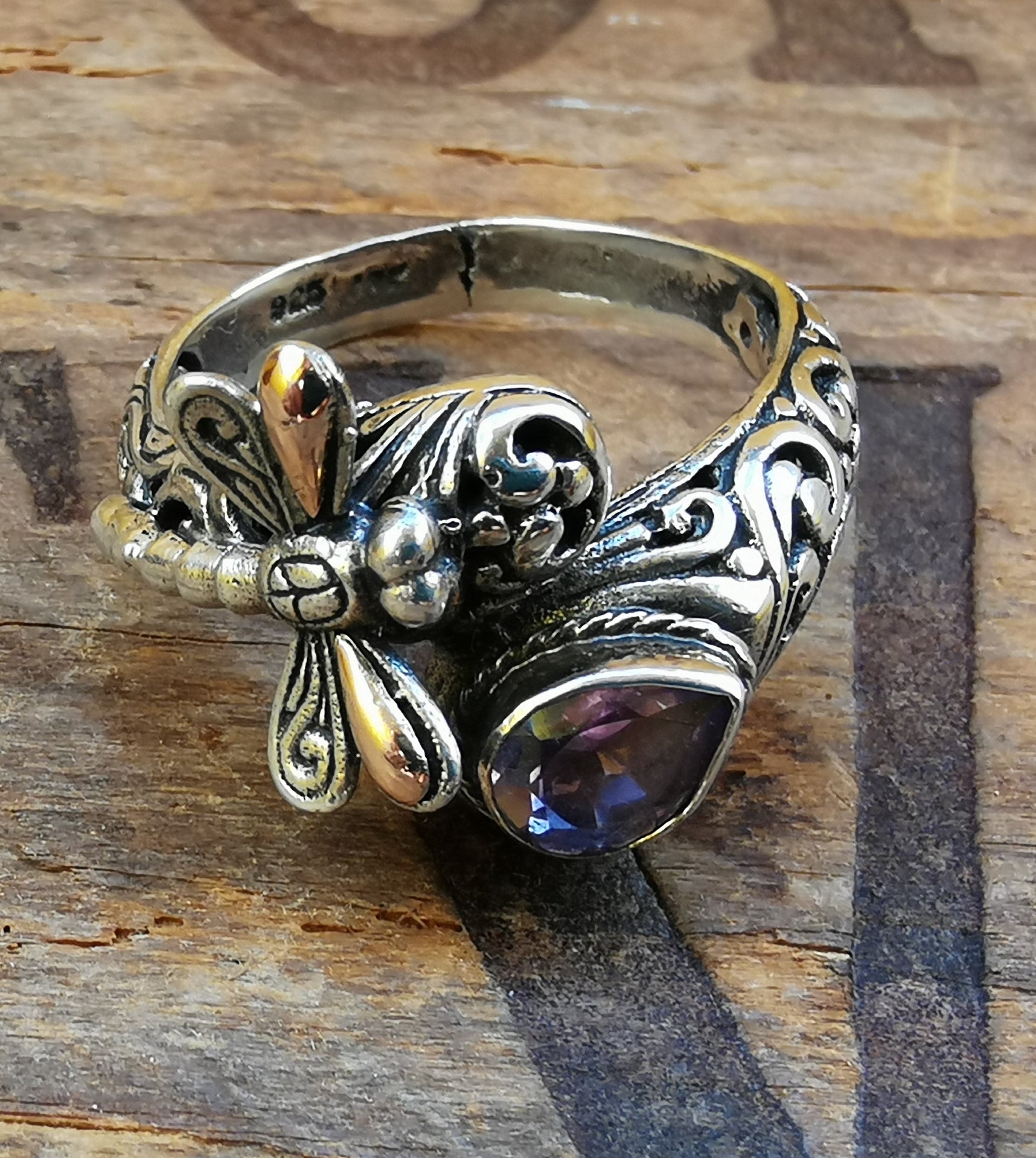 Ref.RG0142 - Ring with dragonfly motif & amethyst gem.