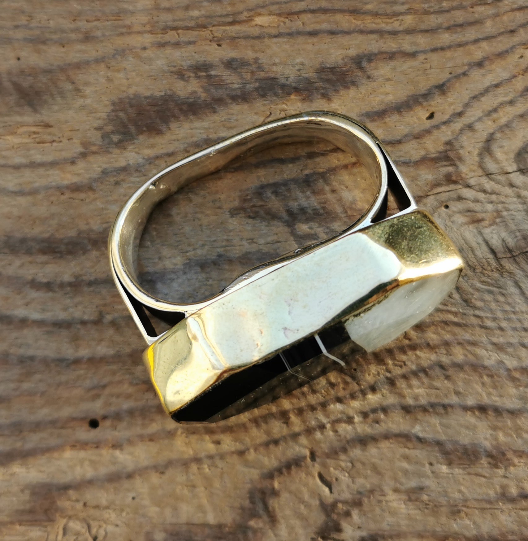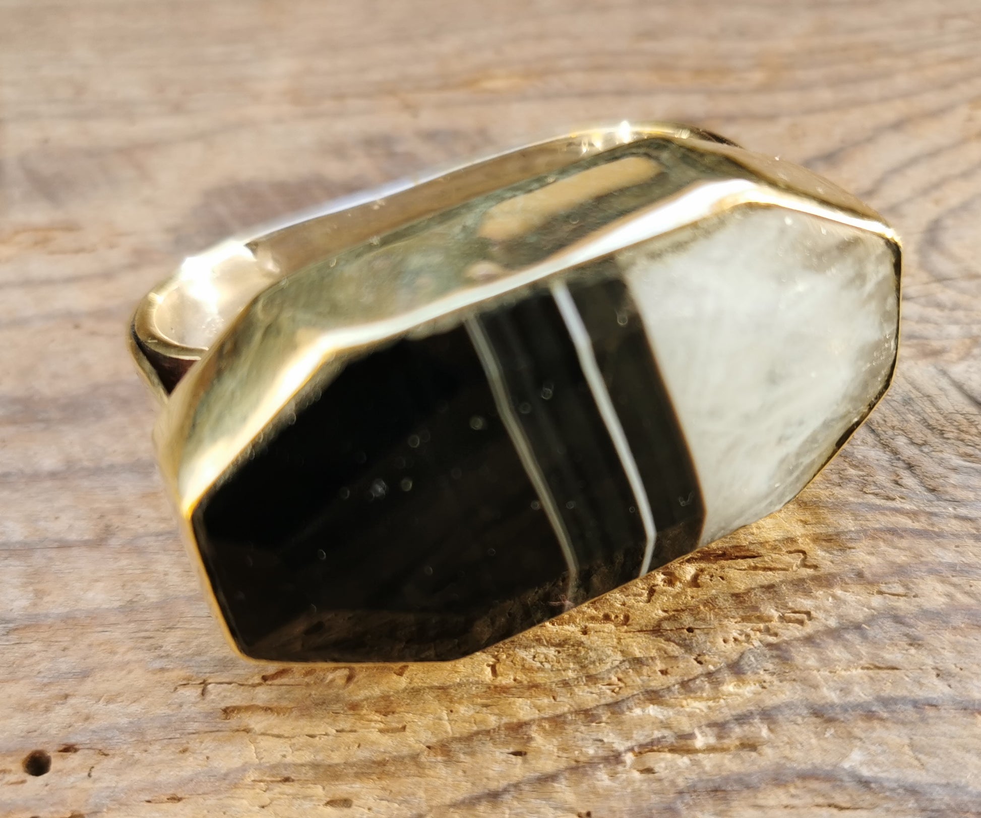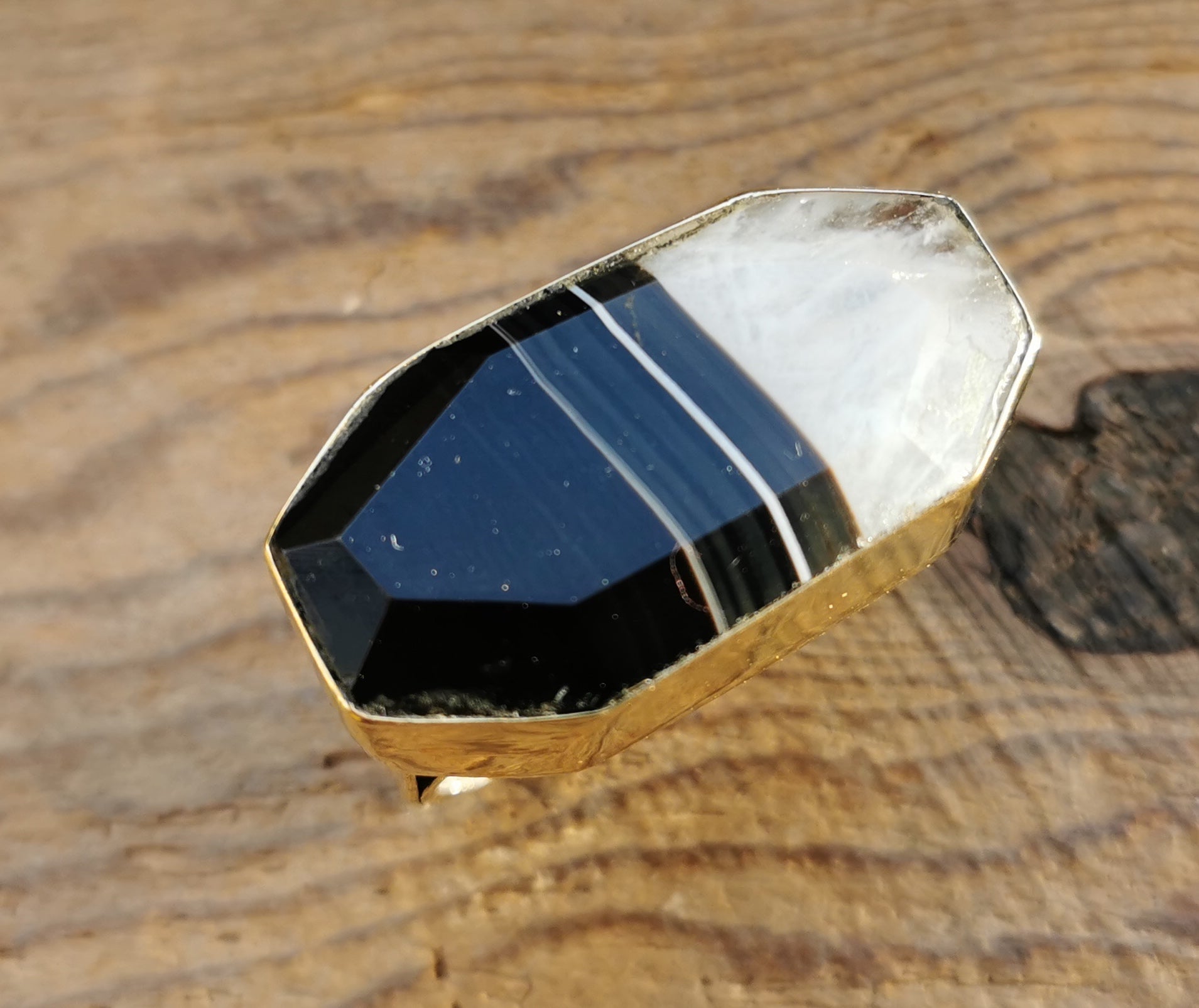 Ref.RG0150 - Two finger ring with agate gemstone.