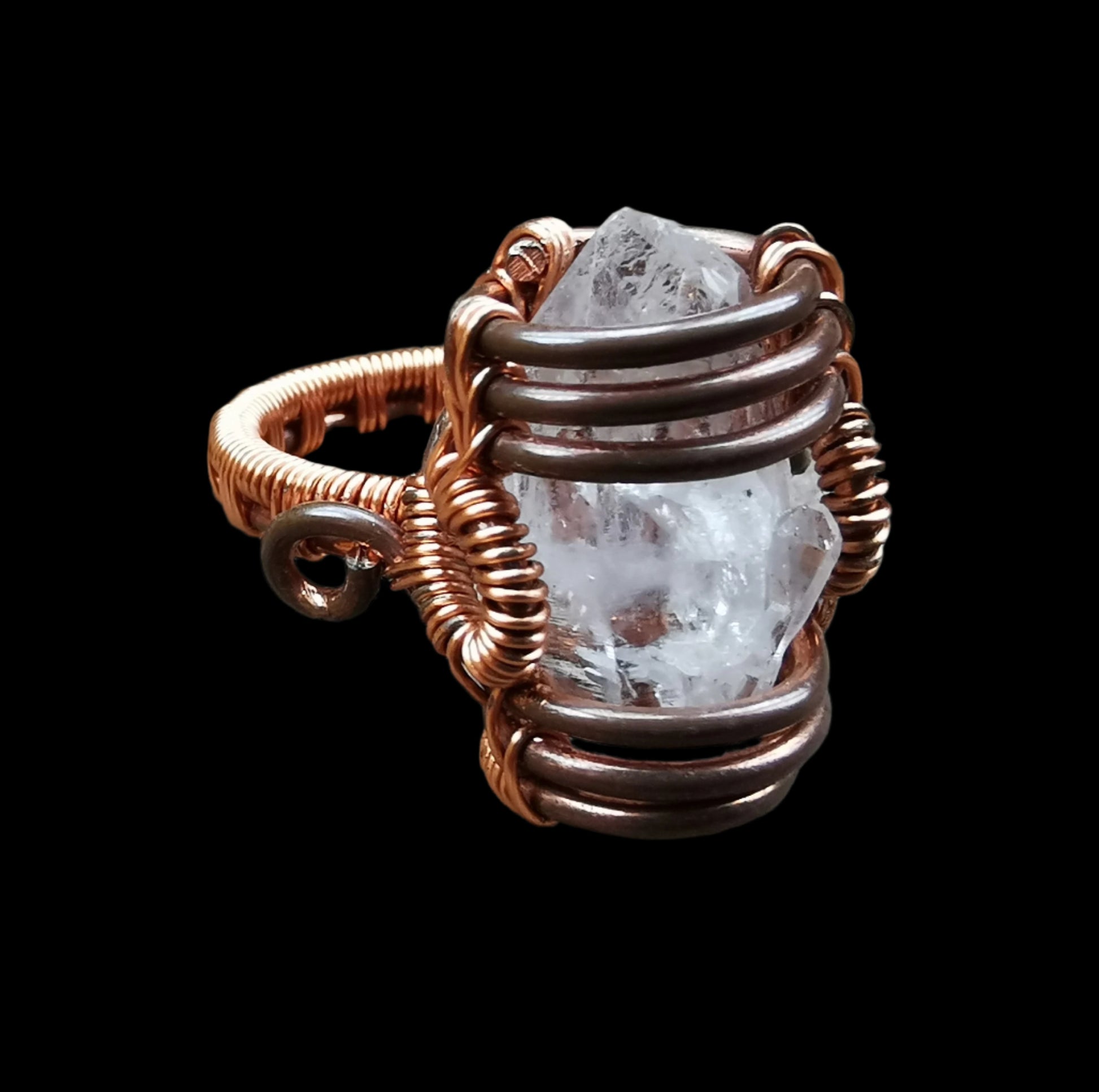 Ref.RG0155 - Wire wrap ring with herkimer gemstone.