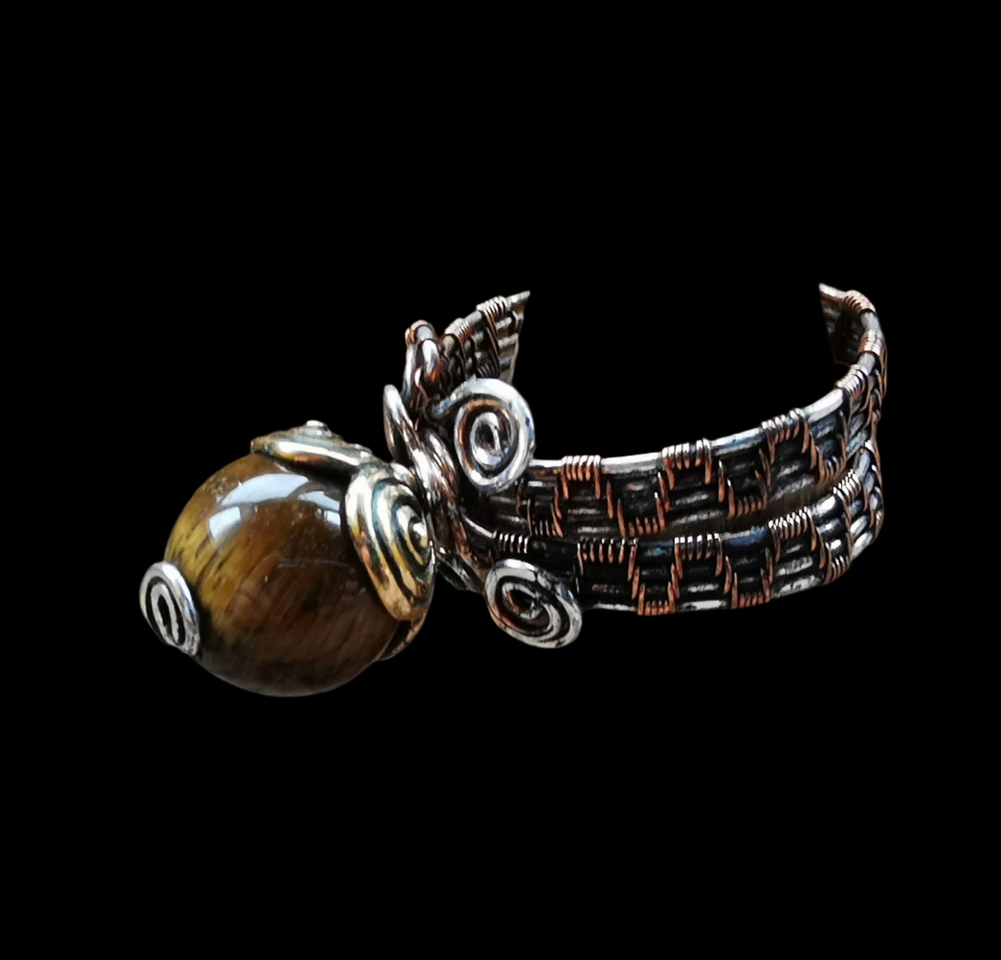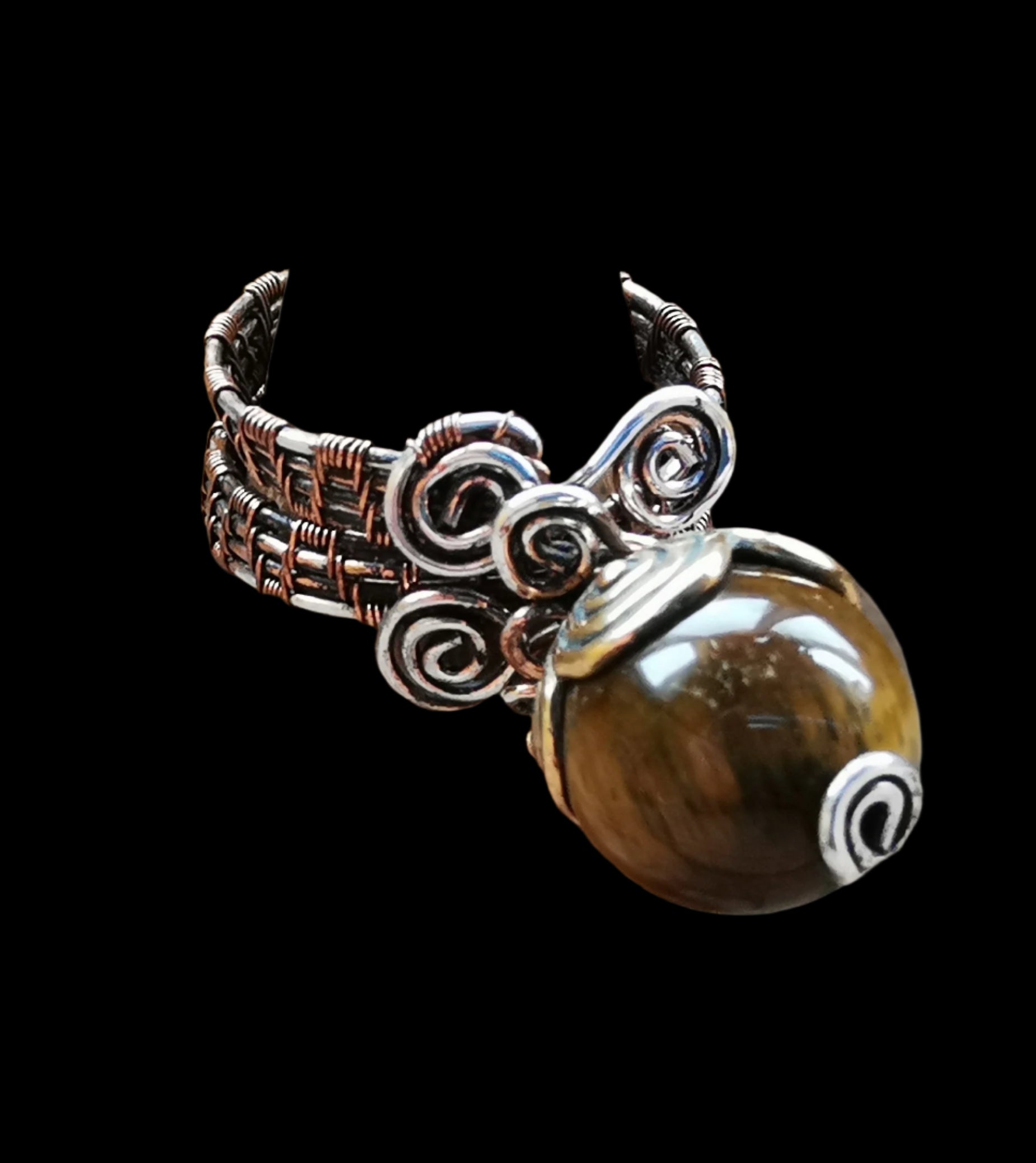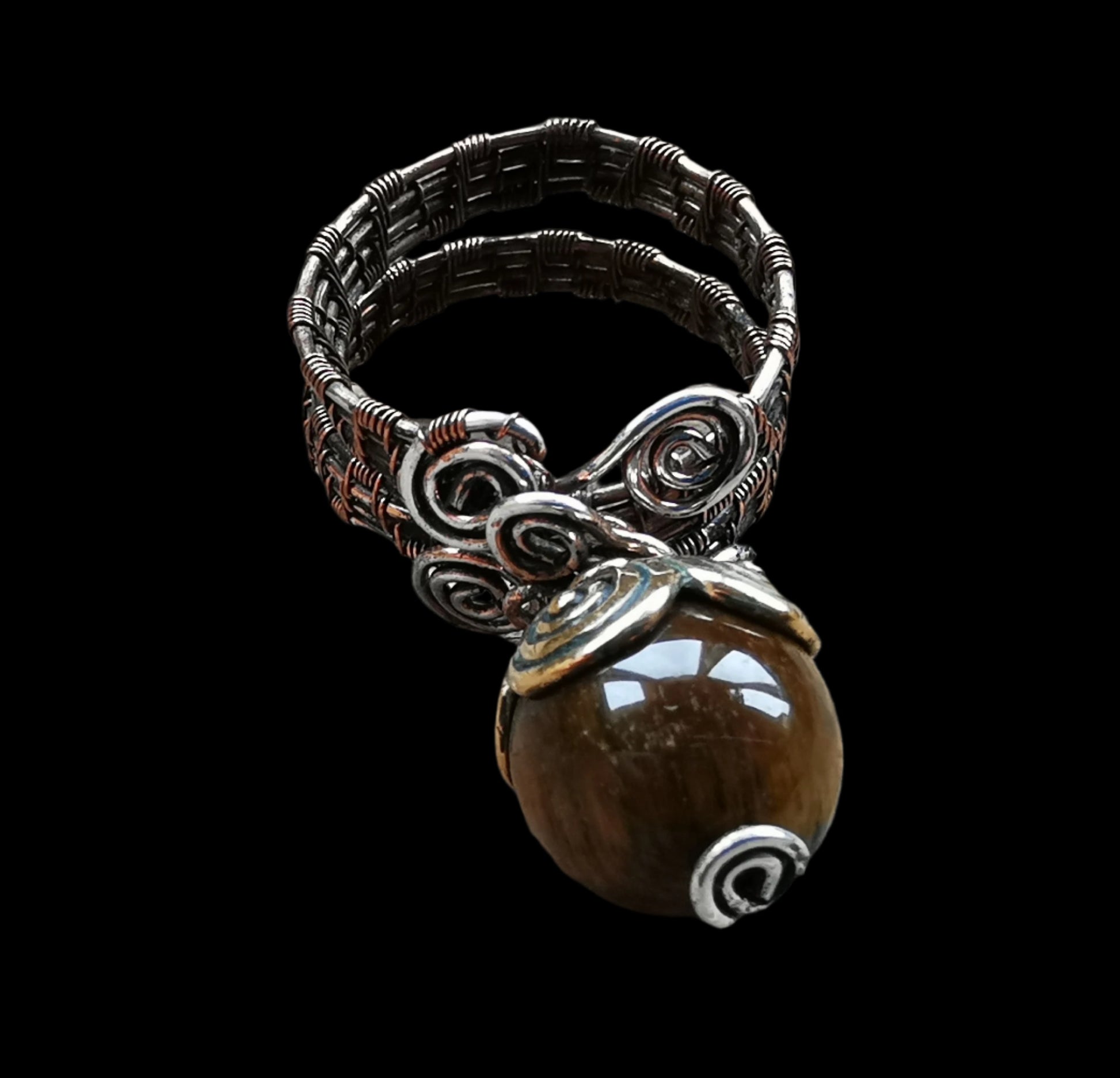Ref.RG0156 - Wire wrap ring with tiger eye gemstone.