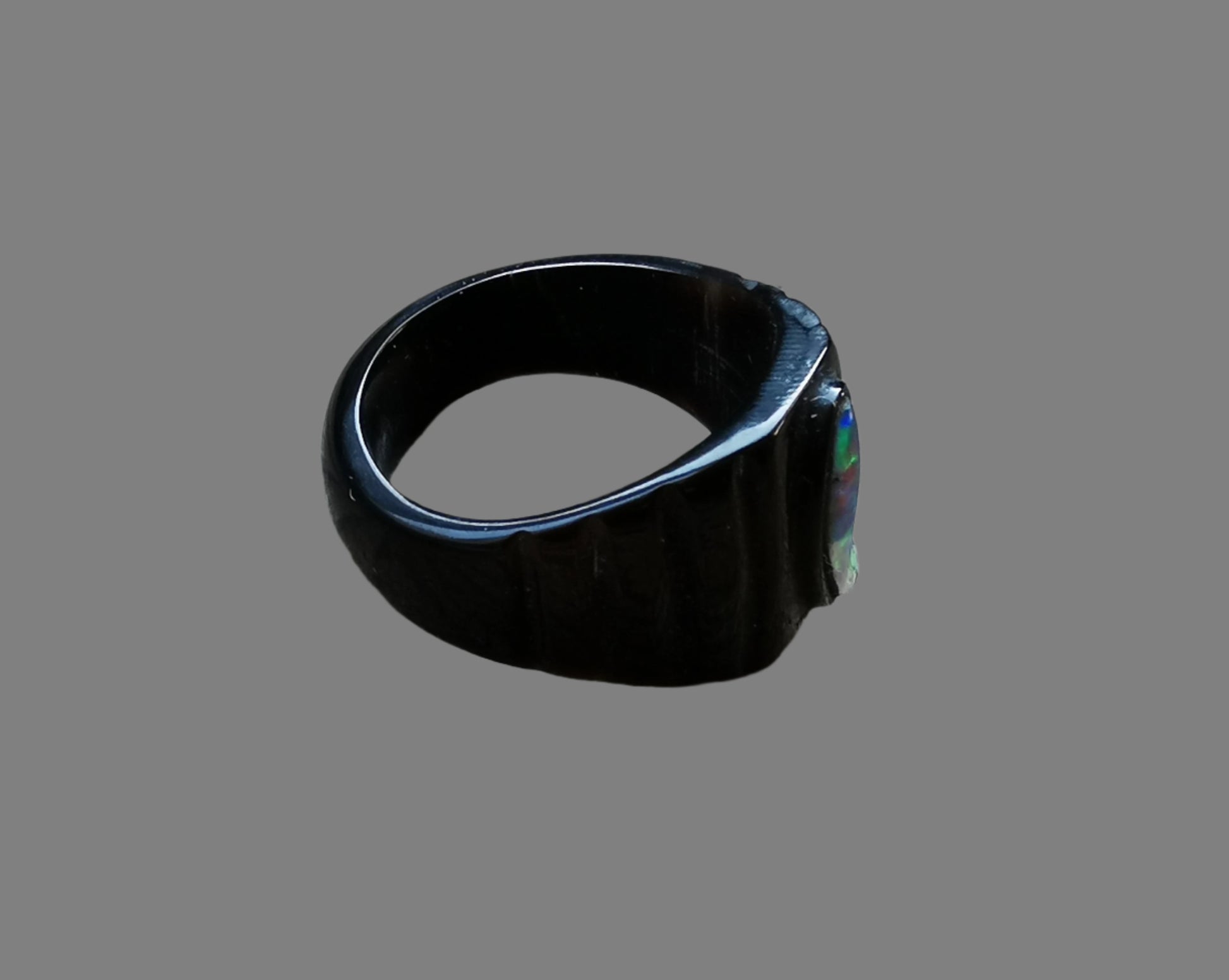 Ref.RG0157 - Horn carved ring with Javanese black opal
