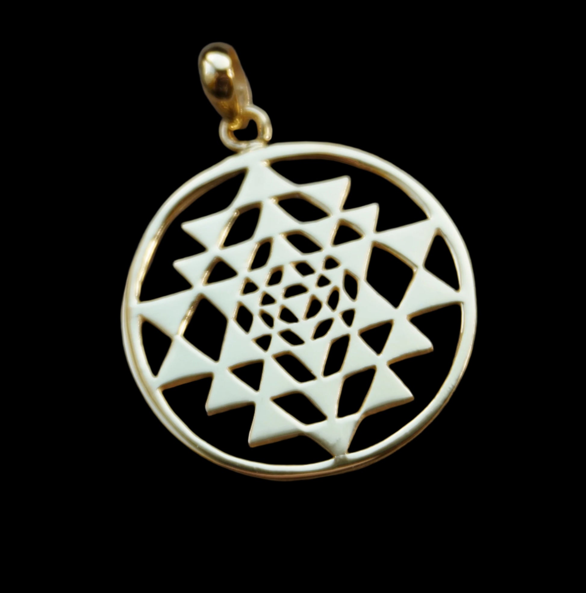 Symmetry and Balance: The Sri Yantra’s precise symmetry reflects harmony and equilibrium. Its intricate design invites contemplation of order within chaos, as the overlapping shapes create a sense of both movement and stability.