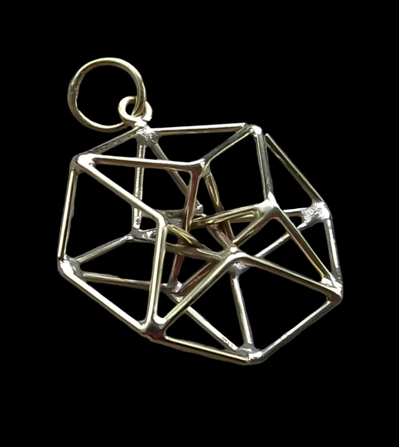 The toroidal hypercube is representative of the hyper spatial geometry of time and space, the zero point through which light, as information, passes unlimited by time and space. It evokes our awareness of the event horizon between the ‘infinite in’ and the ‘infinite out’.