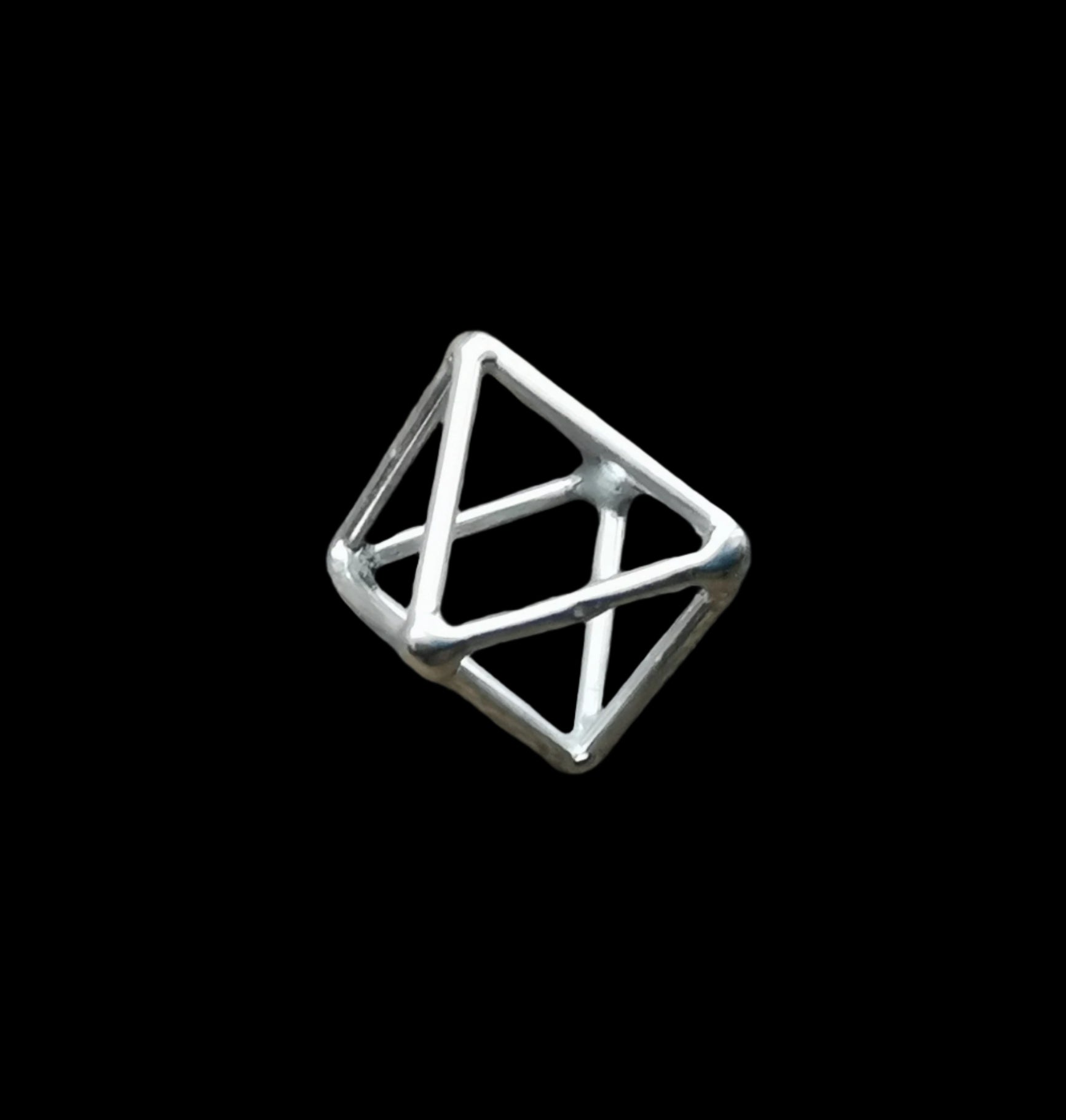 The Octahedron is one of the Platonic solids and symbolizes Air. An octahedron has six vertices, and eight triangular faces, out of which four meet.