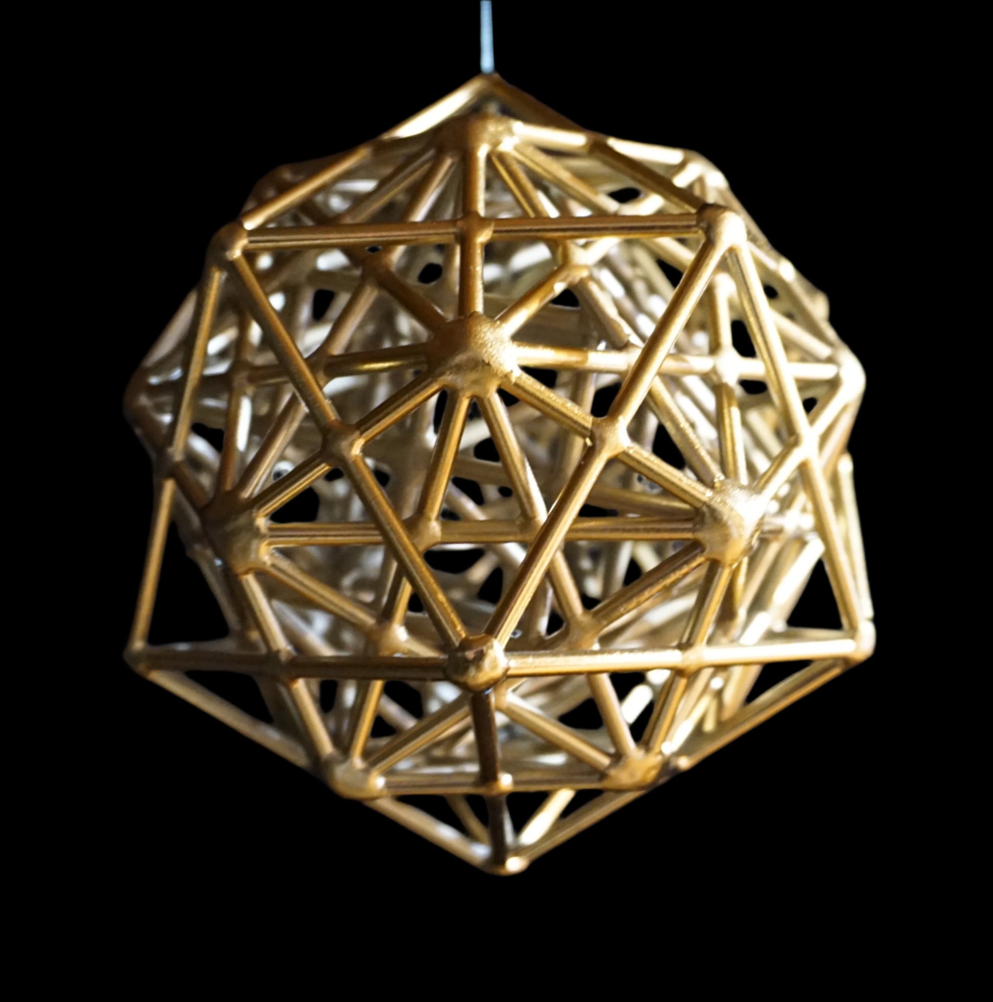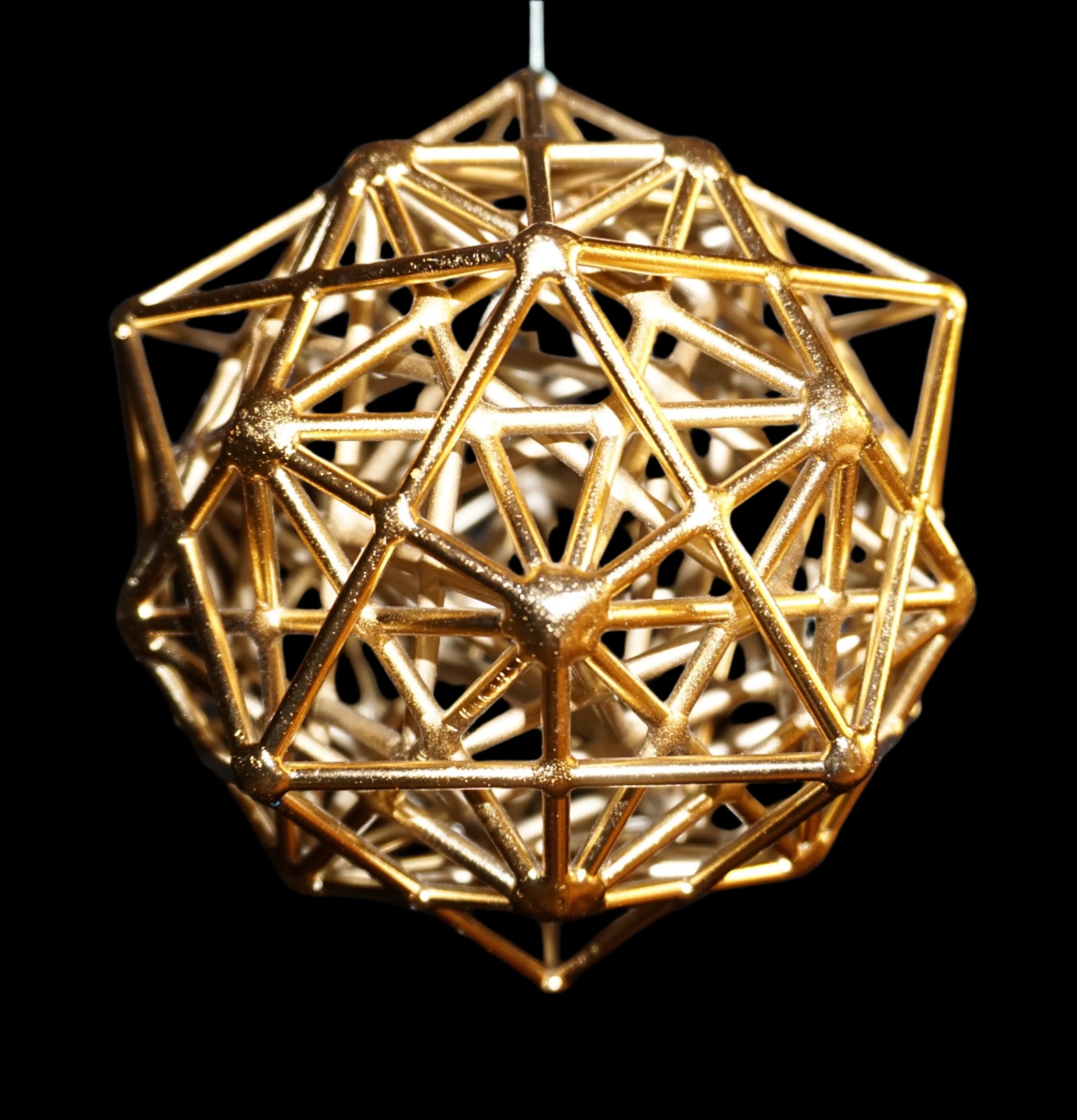 We have made this and versions of it since I began making geometry, in fact after a cardboard Star tetrahedron covered in holographic glitter, the first metal geometry we made was the 5 platonic solids nested in the fashion you see in this piece. It was also used in our first ever geometry ceremony. And yet I have never named it. There are names for the 5 platonic nesting but they never resonated. A couple of months ago I started designing the geometry for the 12th ceremony which will use this as a component although much expanded on as it will include all the Archimedean and other geometries.