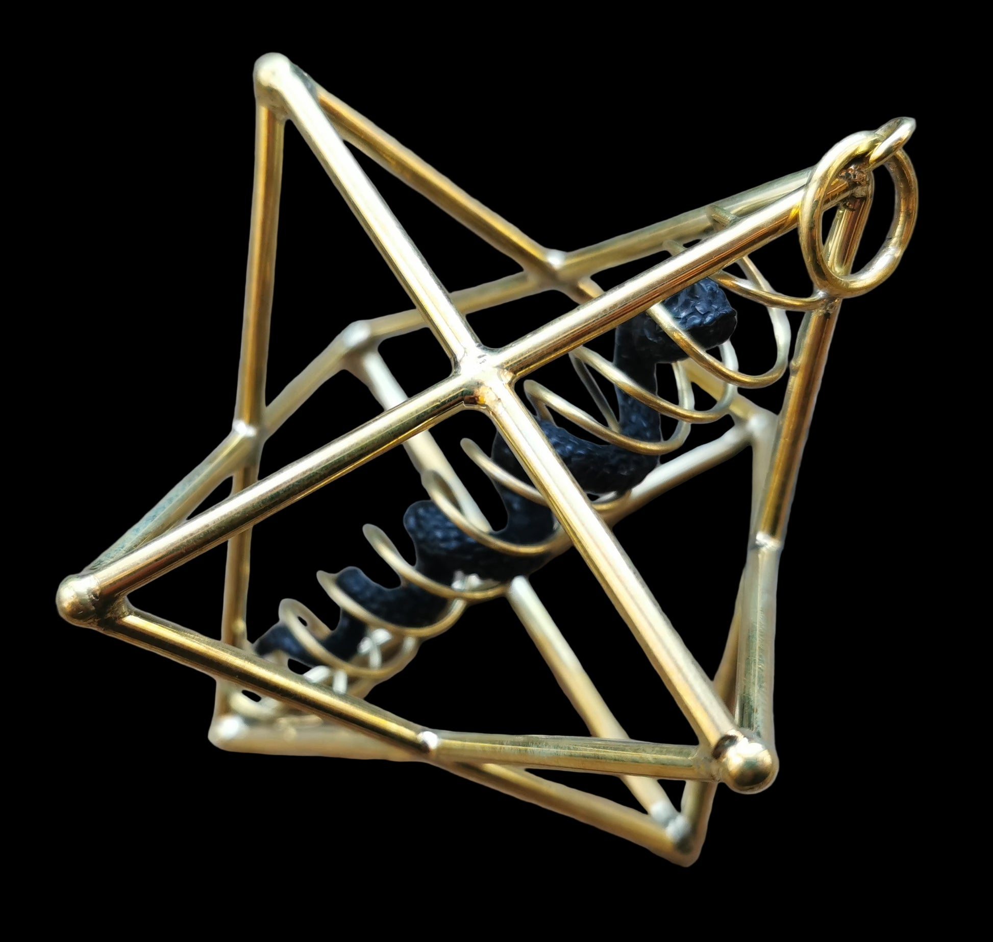 The tetrahedron is the simplest of all 3-dimensional geometric forms, the ‘seed’ of geometry, the first in a succession of the divisions of the sphere. It represents the element of Fire - creation and creativity, sexuality, procreation and desire, transmutation and transformation, the master purifier. In any of its forms or compounded matrices (Star Tetrahedron, Tantric Star, Hyper Tetrahedron), it is a gateway to our Self.