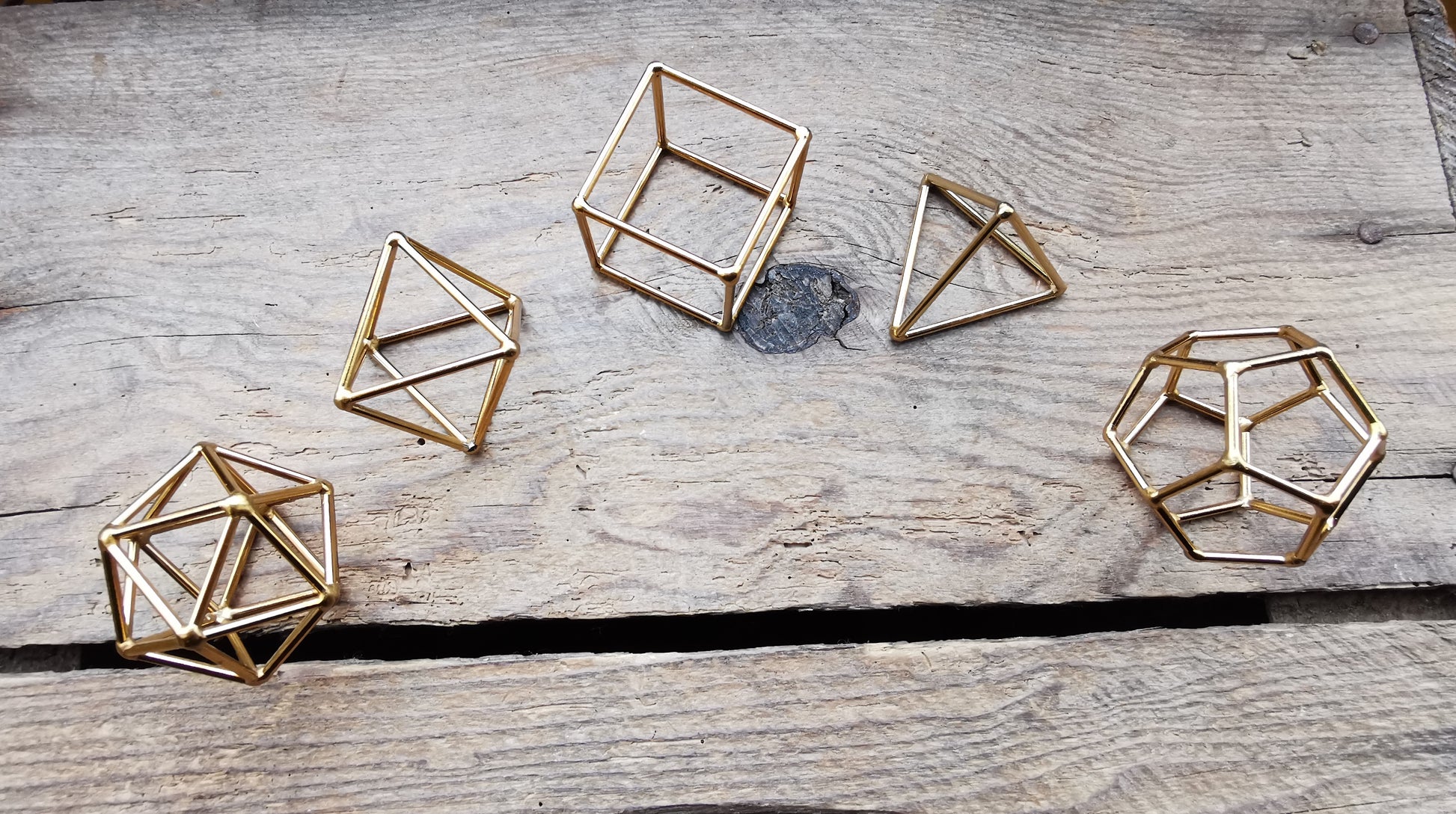 The icosahedron is the last of the 5 platonic solids. It has twelve vertices and twenty triangular faces with five faces meeting. It symbolizes the element of Water