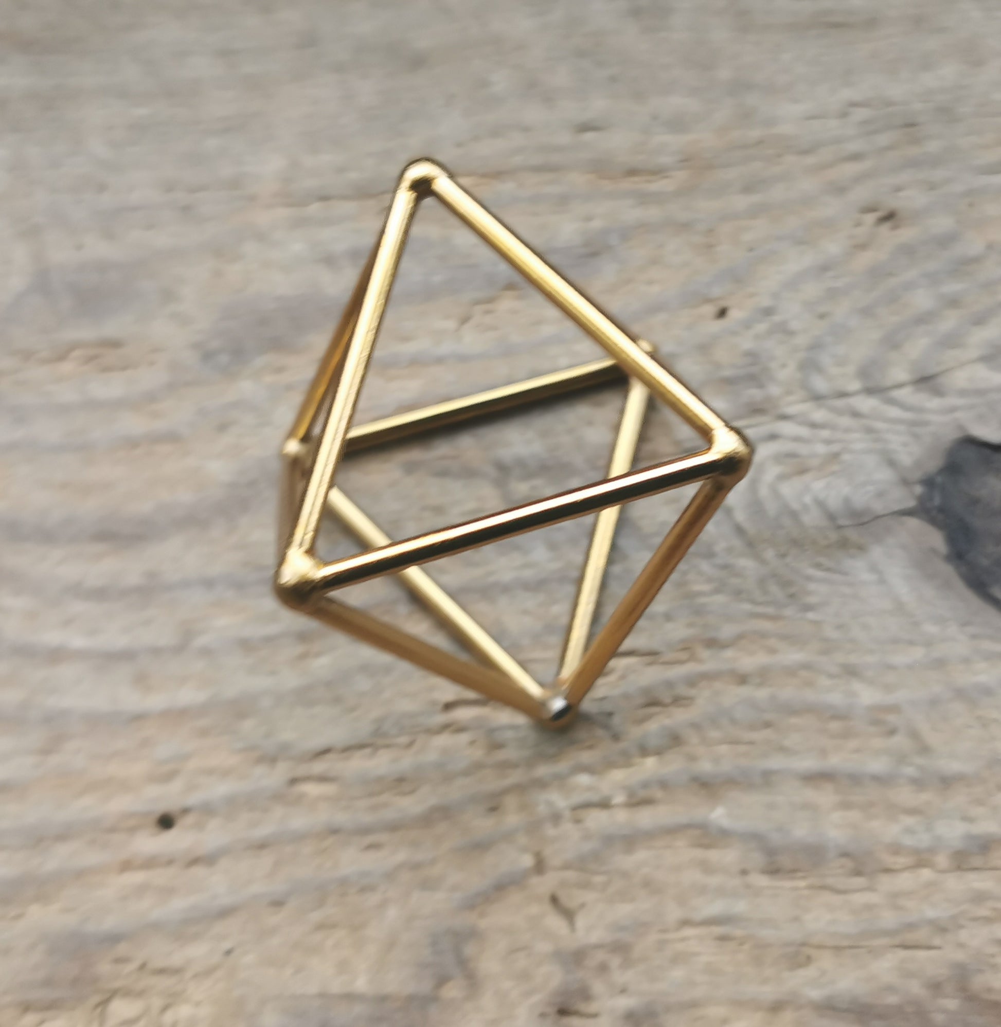 The Octahedron is one of the Platonic solids and symbolizes Air. An octahedron has six vertices, and eight triangular faces, out of which four meet.