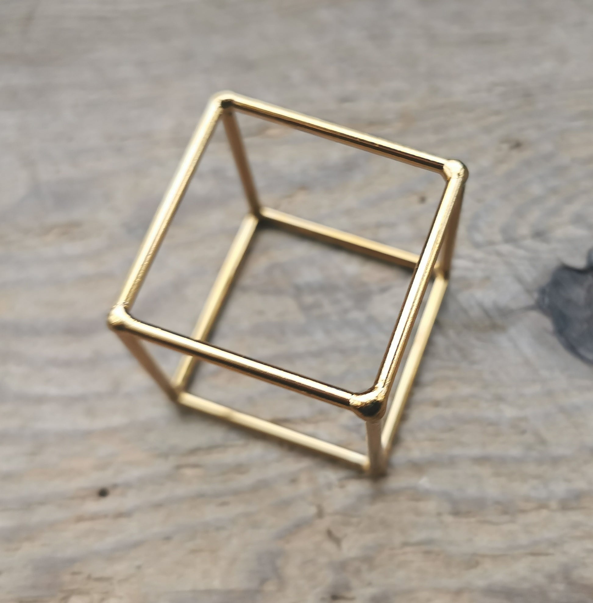 The Cube/Hexahedron is the Platonic solid that symbolizes the Earth. A cube/hexahedron has eight vertices, and six identical, square faces, out of which three faces meet.
