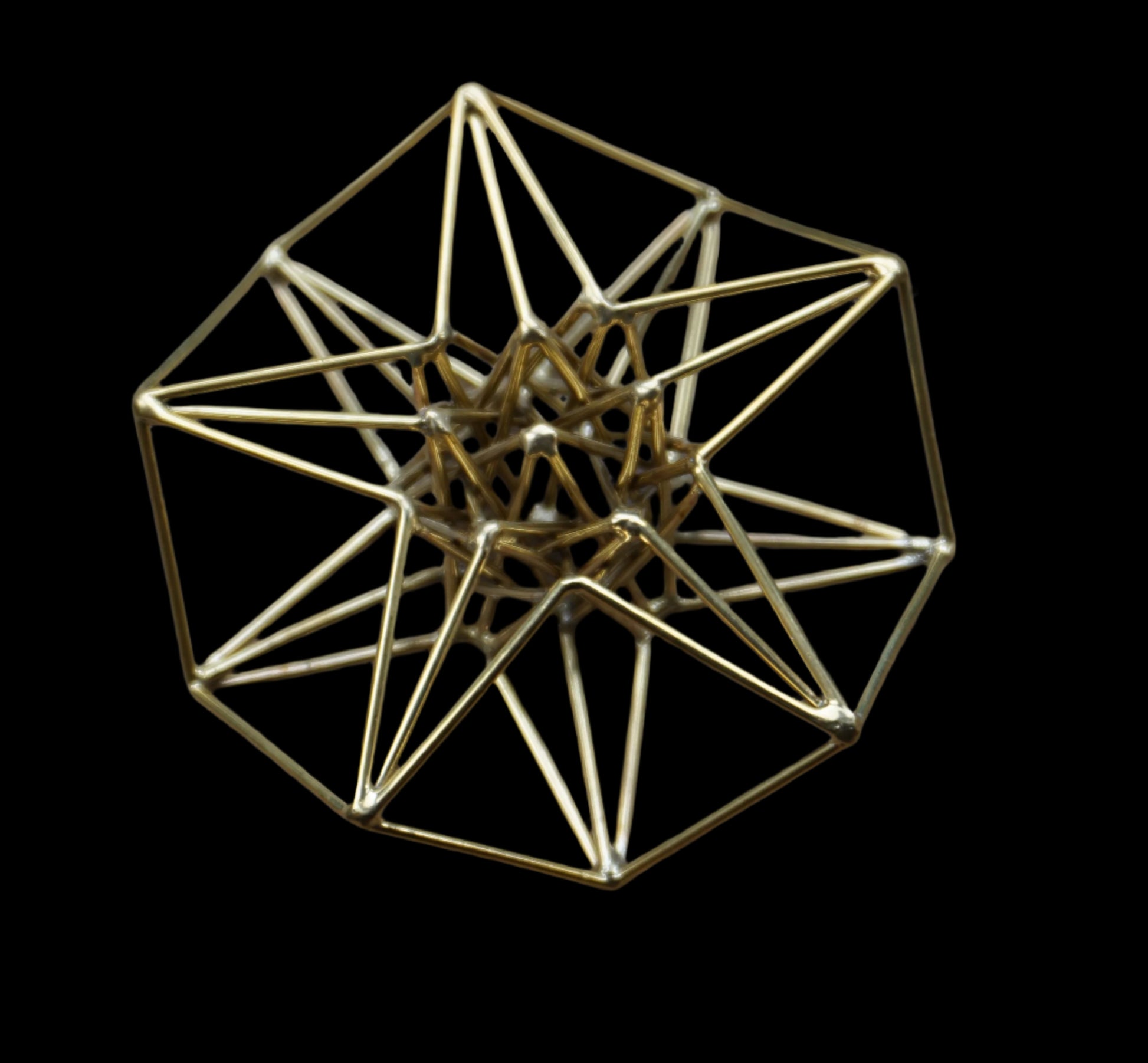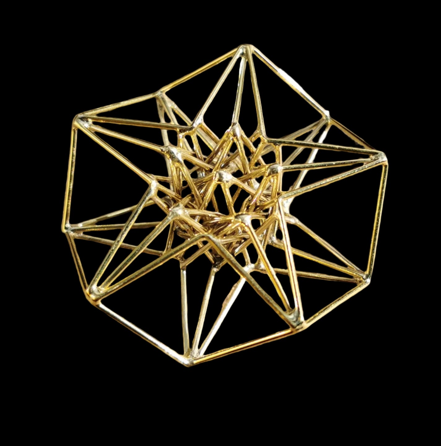 The toroidal hypercube is representative of the hyper spatial geometry of time and space, the zero point through which light, as information, passes unlimited by time and space. It evokes our awareness of the event horizon between the ‘infinite in’ and the ‘infinite out’.