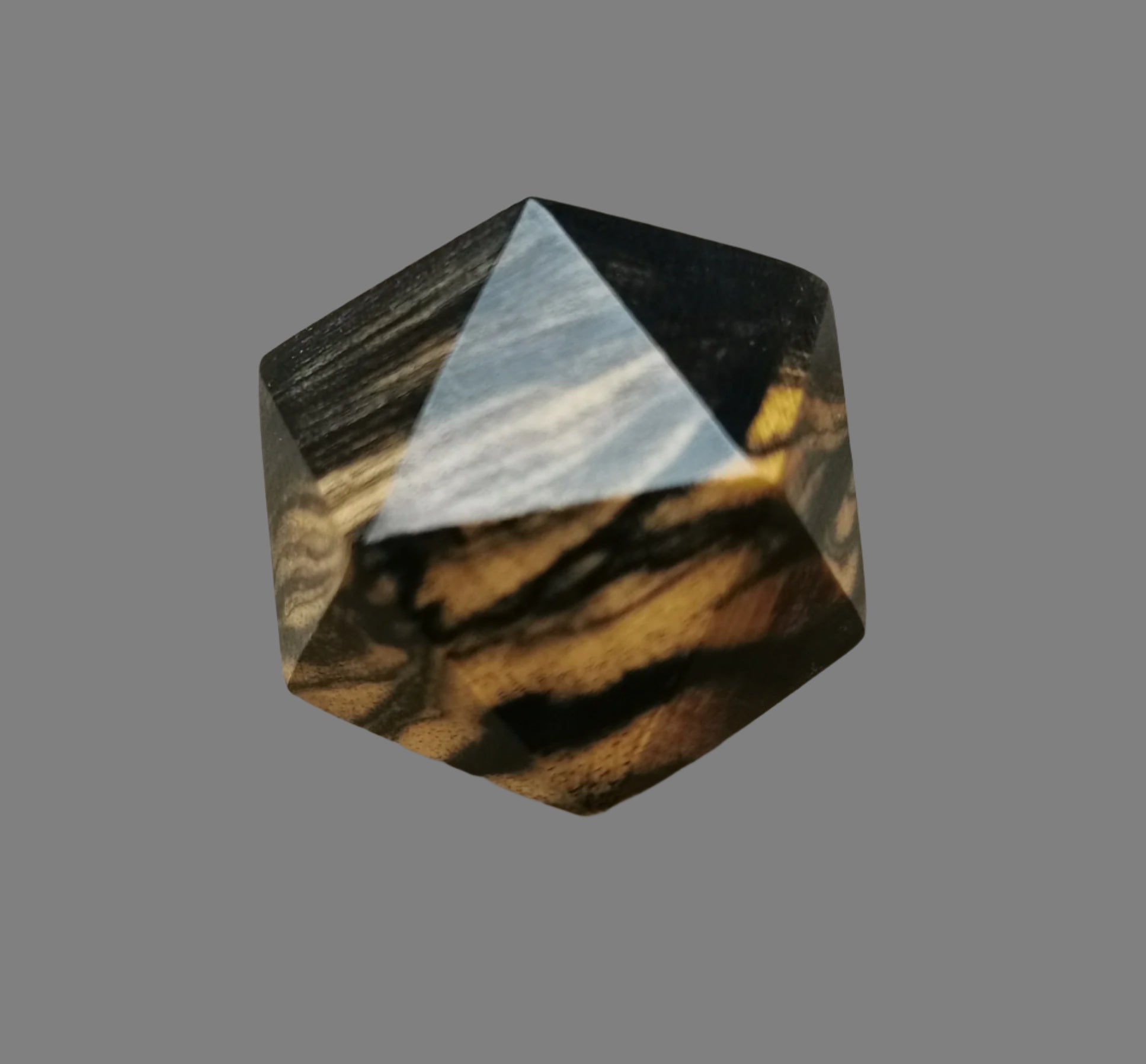 The icosahedron is the last of the 5 platonic solids. It has twelve vertices and twenty triangular faces with five faces meeting. It symbolizes the element of Water