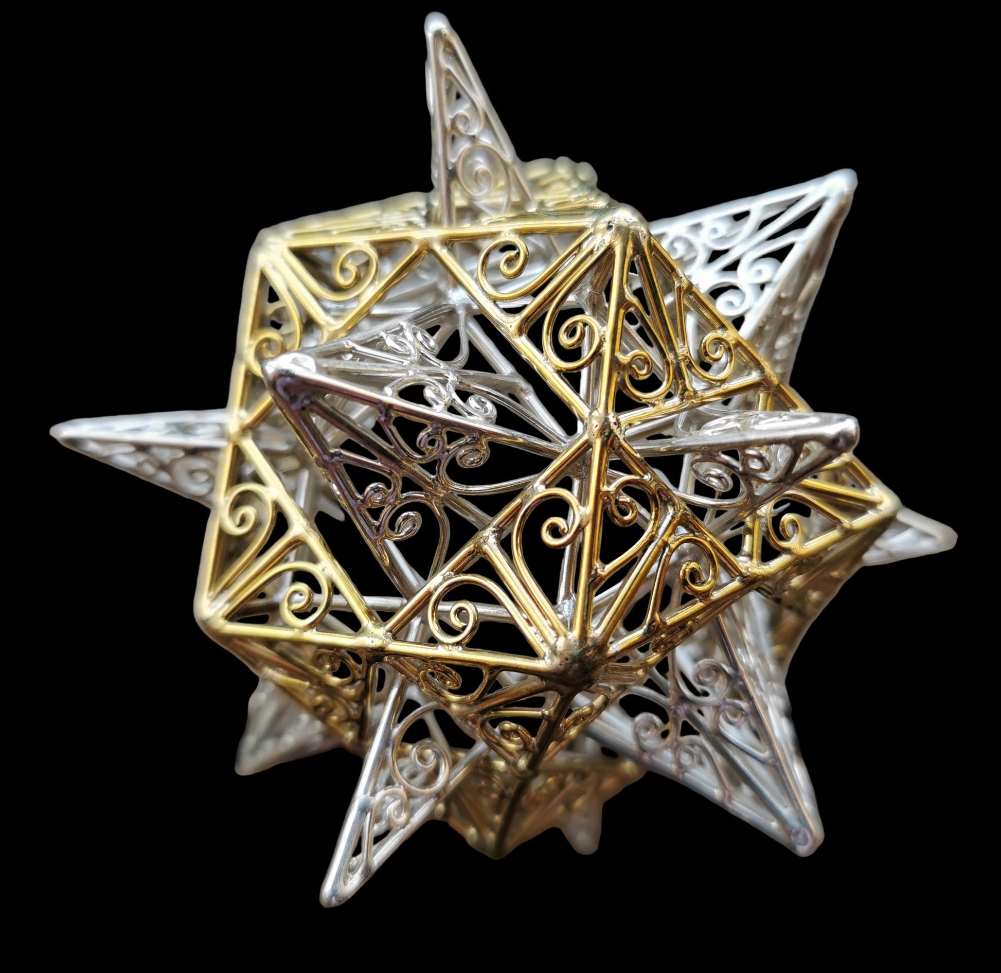 The Iconic Terra Prana Sphere is also known as the Cuboctahedron, the Faraday Cage and the Vector equilibrium, a dynamic balance of energies. As a magnetic form of consciousness, it awakens the sensory self to the miracle of conscious existence and heals the heart with the sense of gratitude. It brings ideas into manifestation and has a calming and grounding effect. As an Inner Vector (with stellations focusing to the interior) it assists meditation and inner communion. The Iconic Terra Prana Sphere forms the centre of the Heart Star.