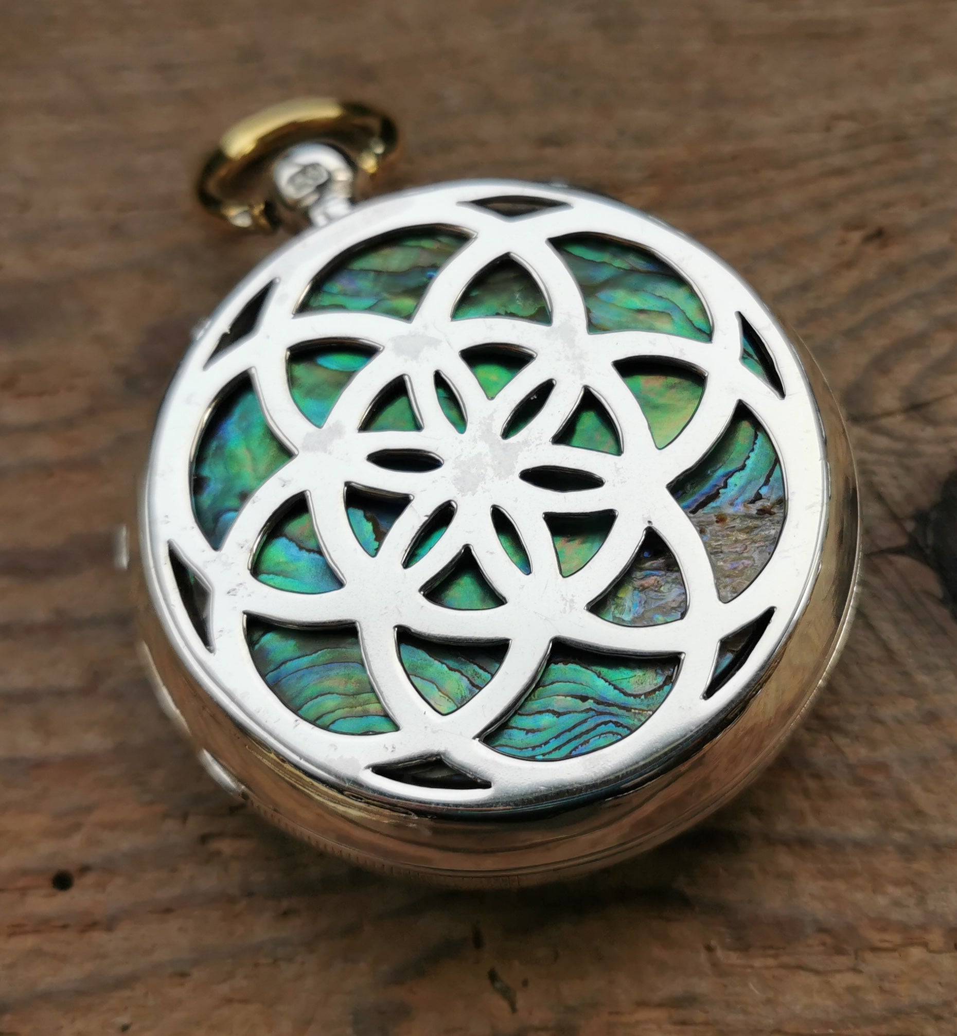 Ref.WA0002 - Watch box with Solar Mandala, aka Seed of Life, mandala in silver & abalone.