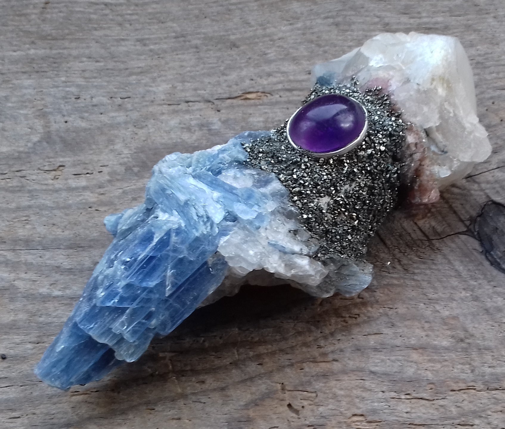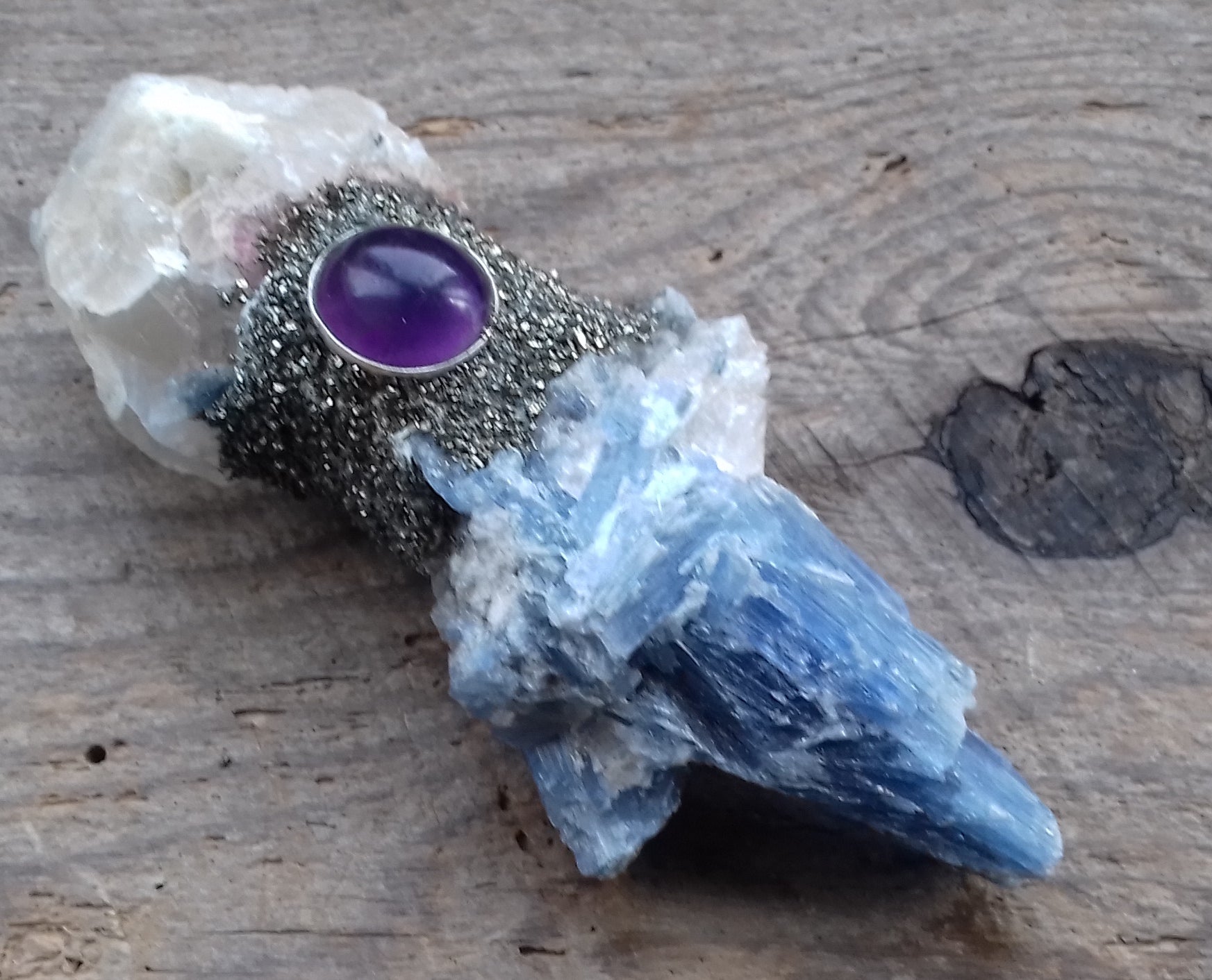 Ref.WD0068 - Wand with tourmaline, kyanite & amethyst gemstones, plus pyrite.