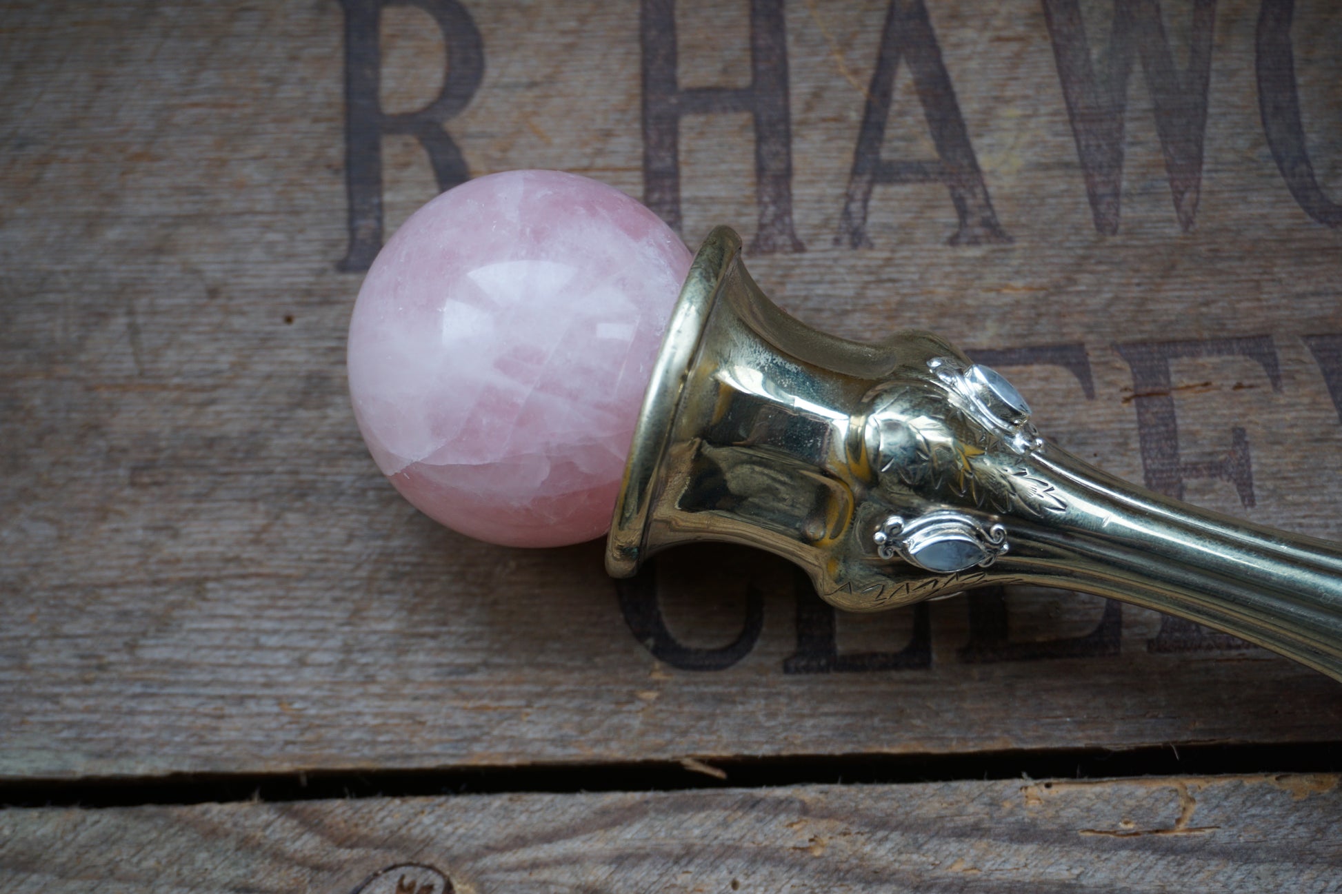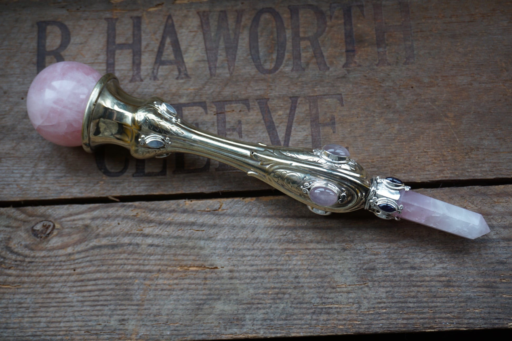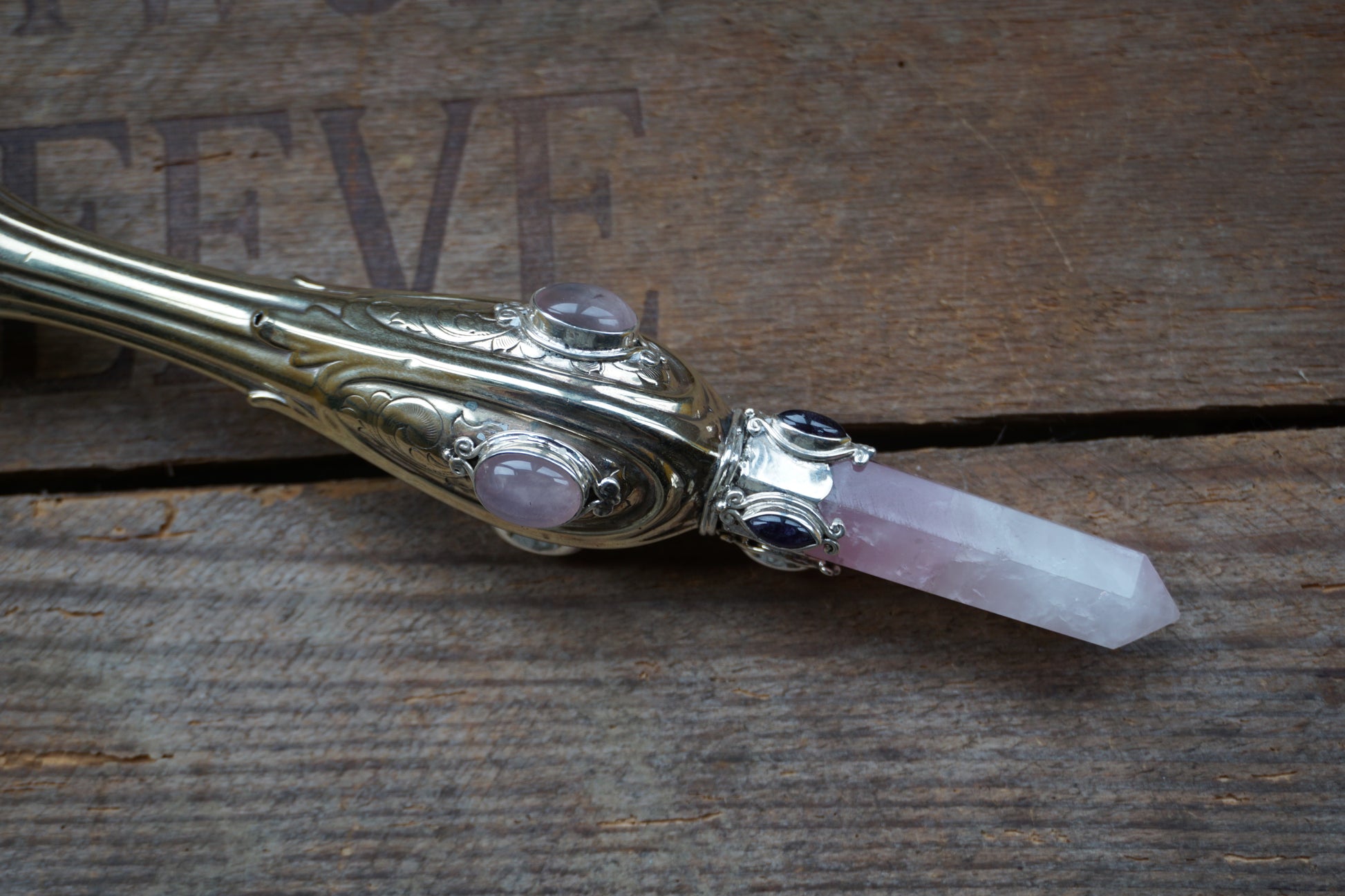 Ref.WD0169 - Silver plated wand with rose quartz sphere, amethyst, moonstone, and rose quartz gems.
