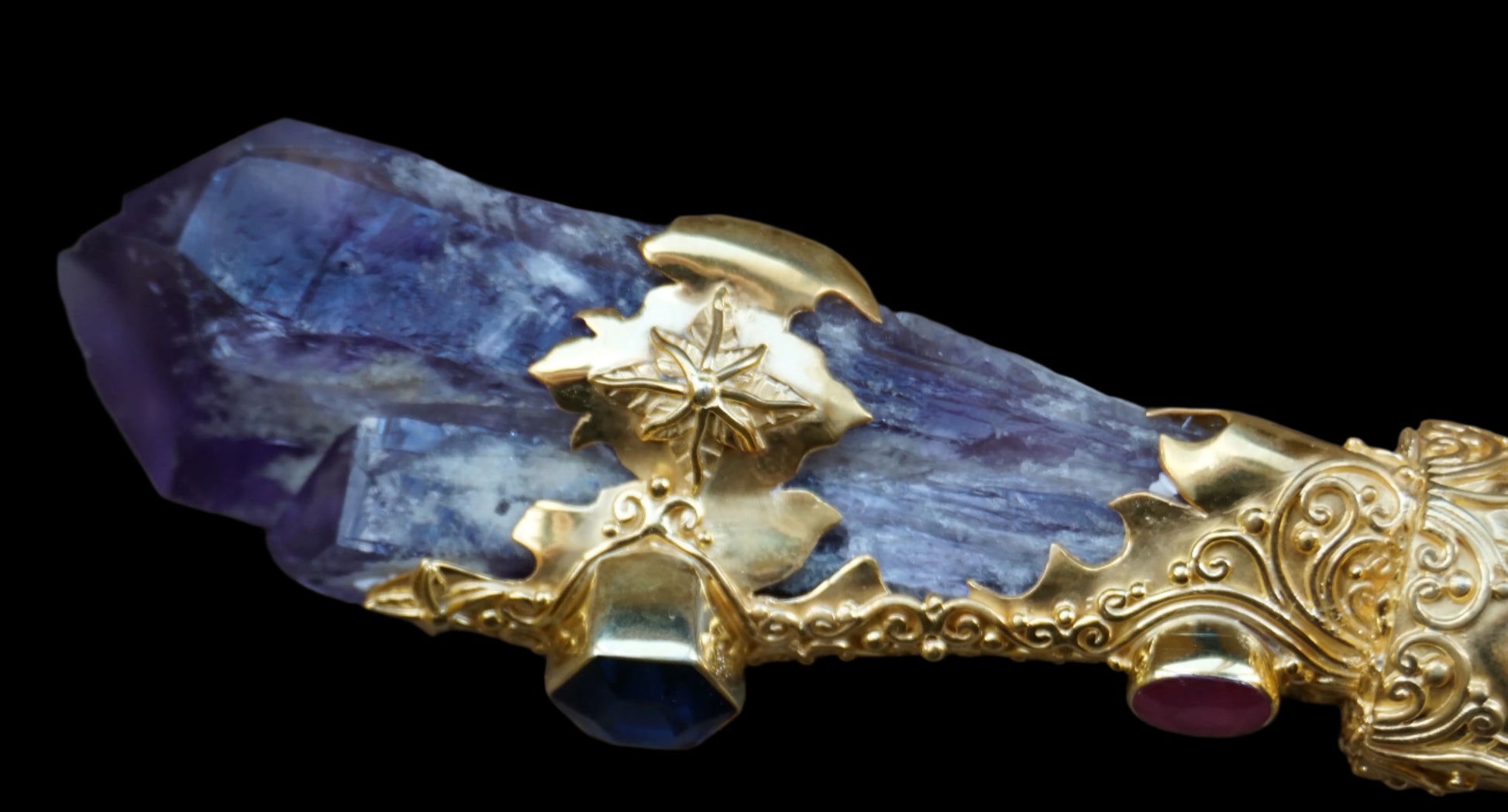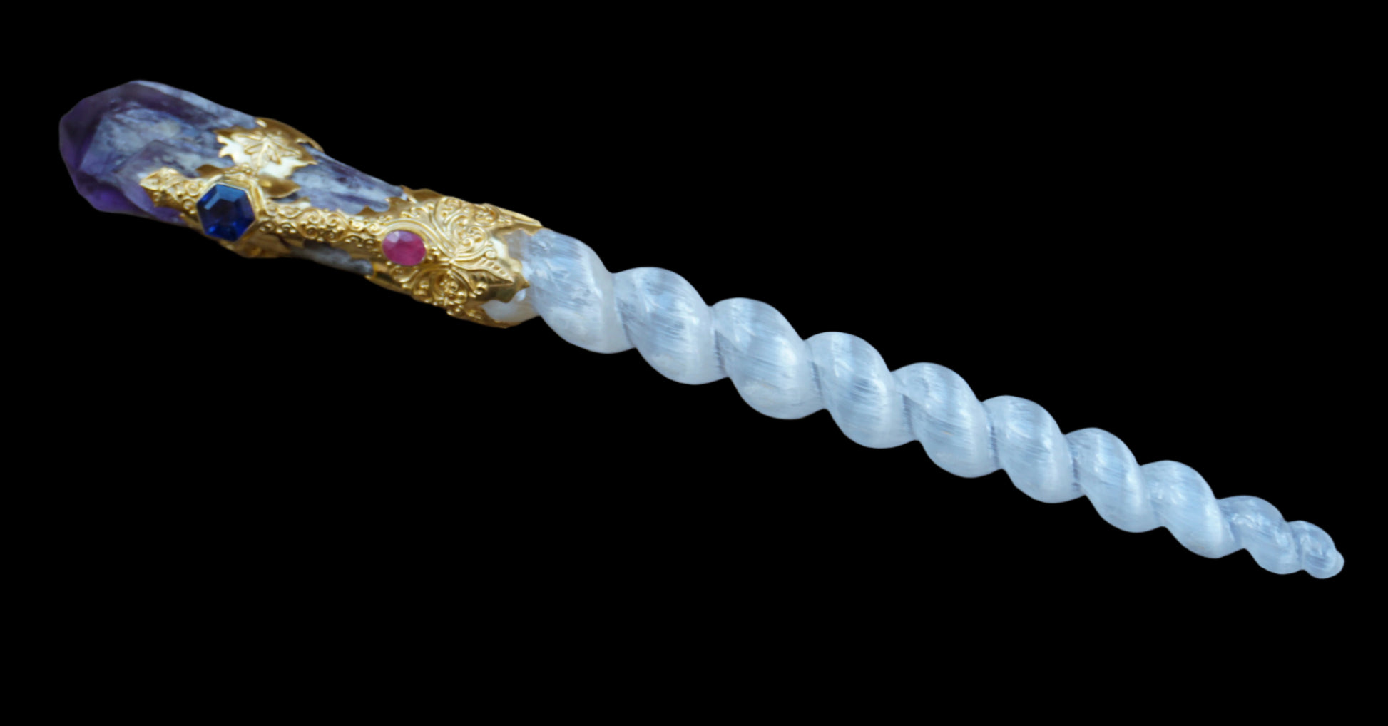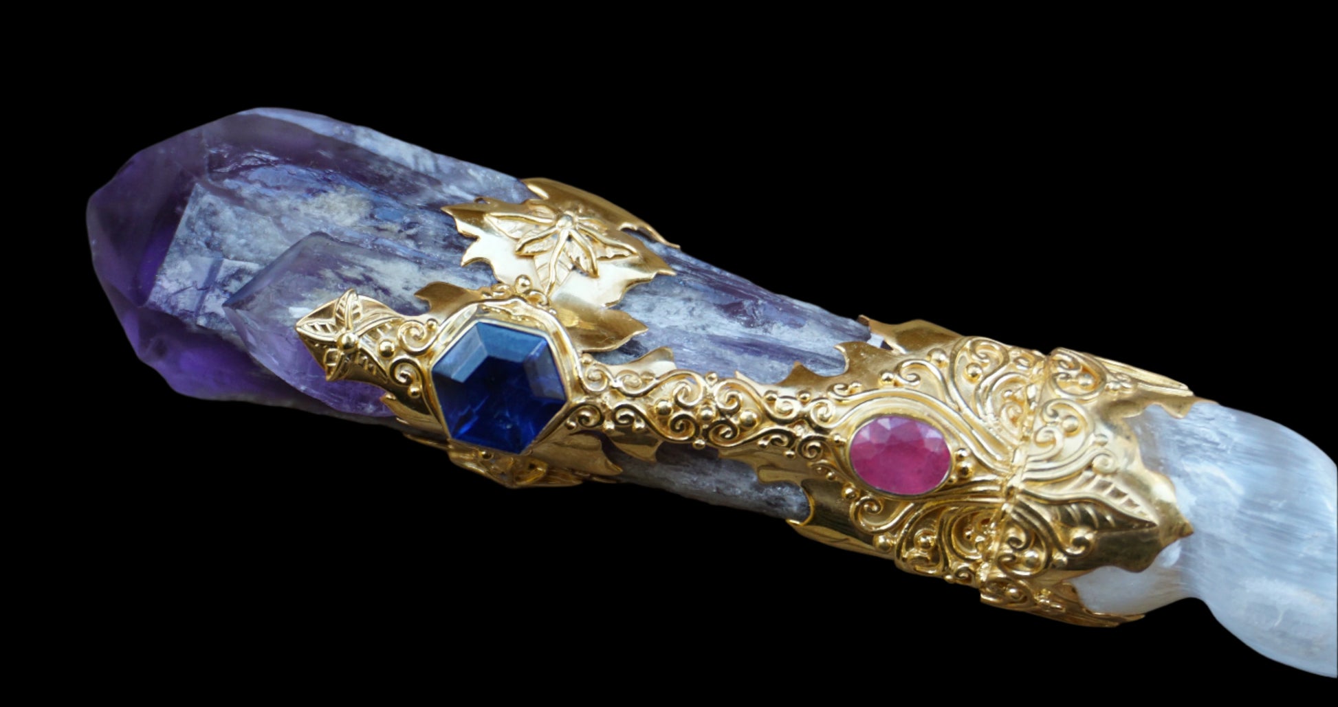 Ref.WD0182 - Gold plated on silver wand with amethyst, sapphire, ruby, and selenite gemstones.