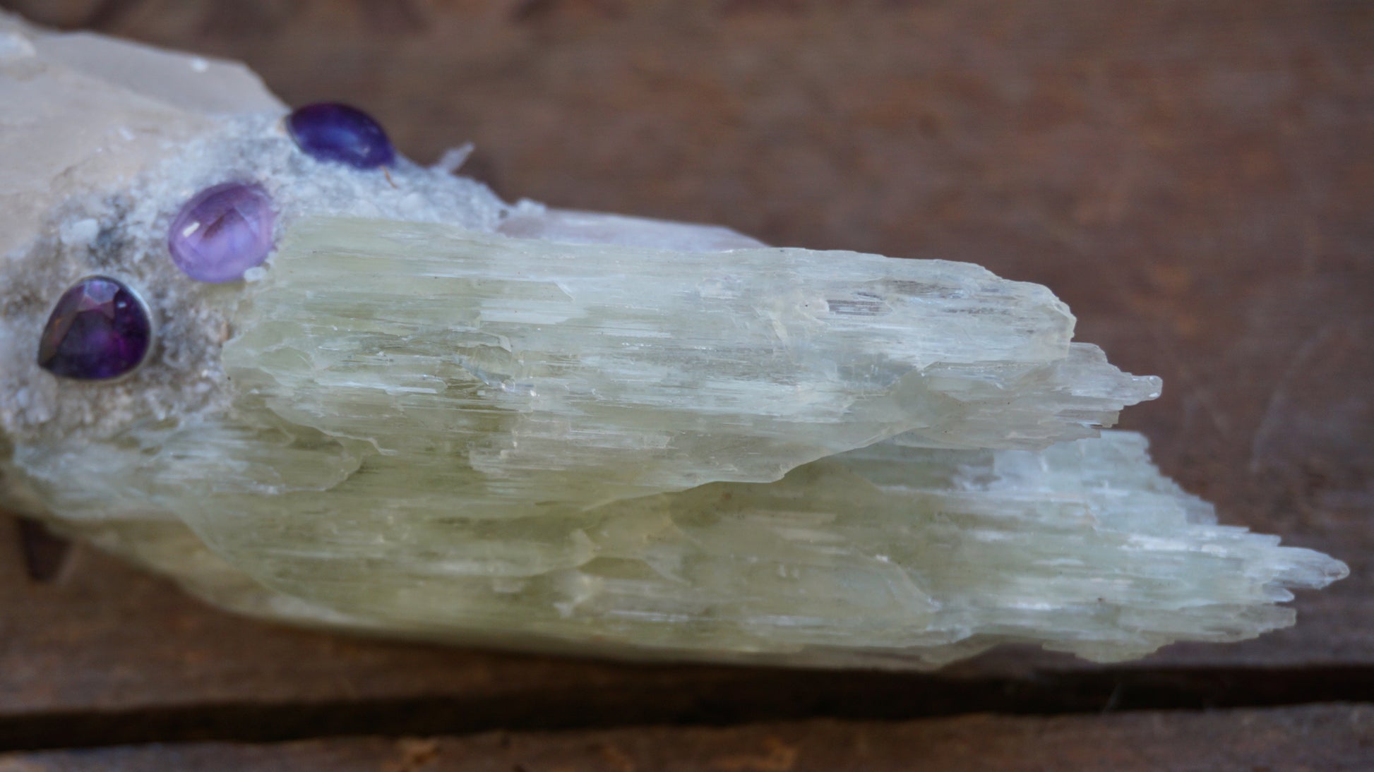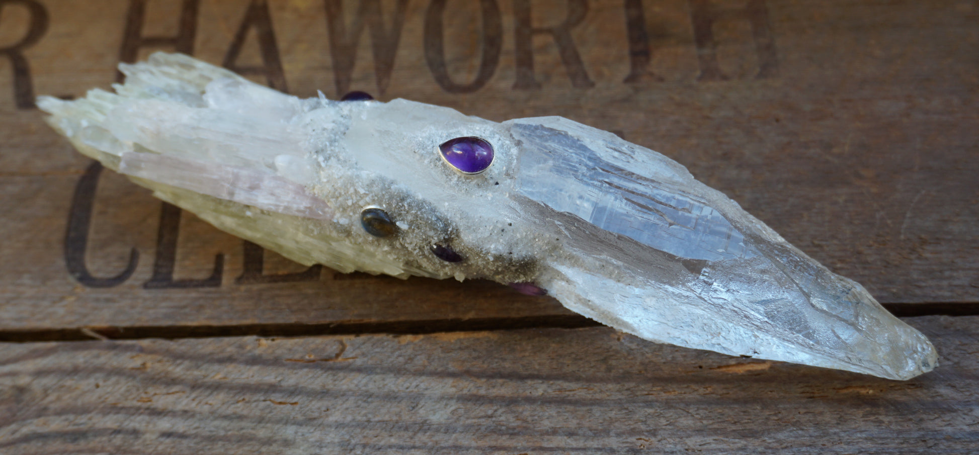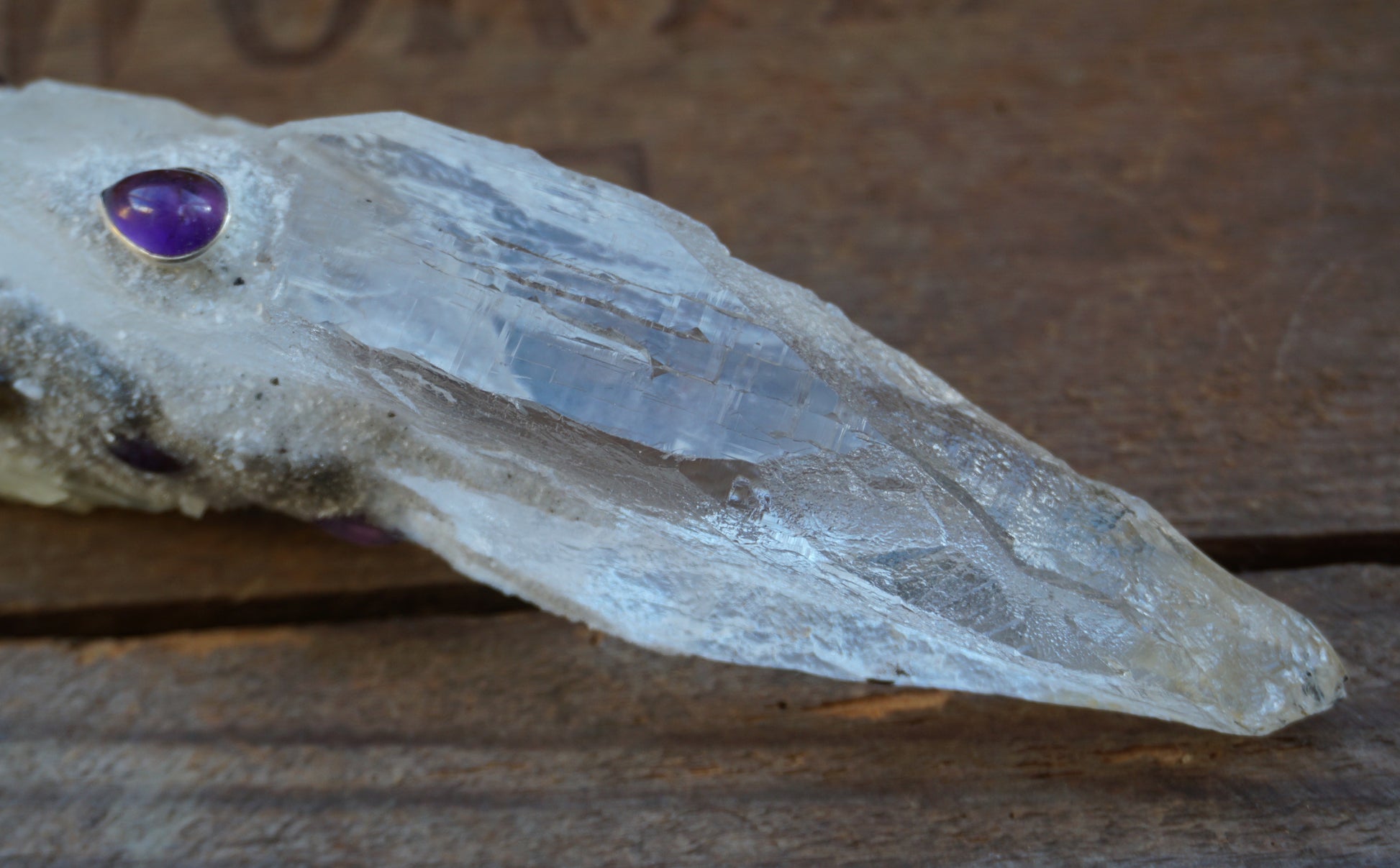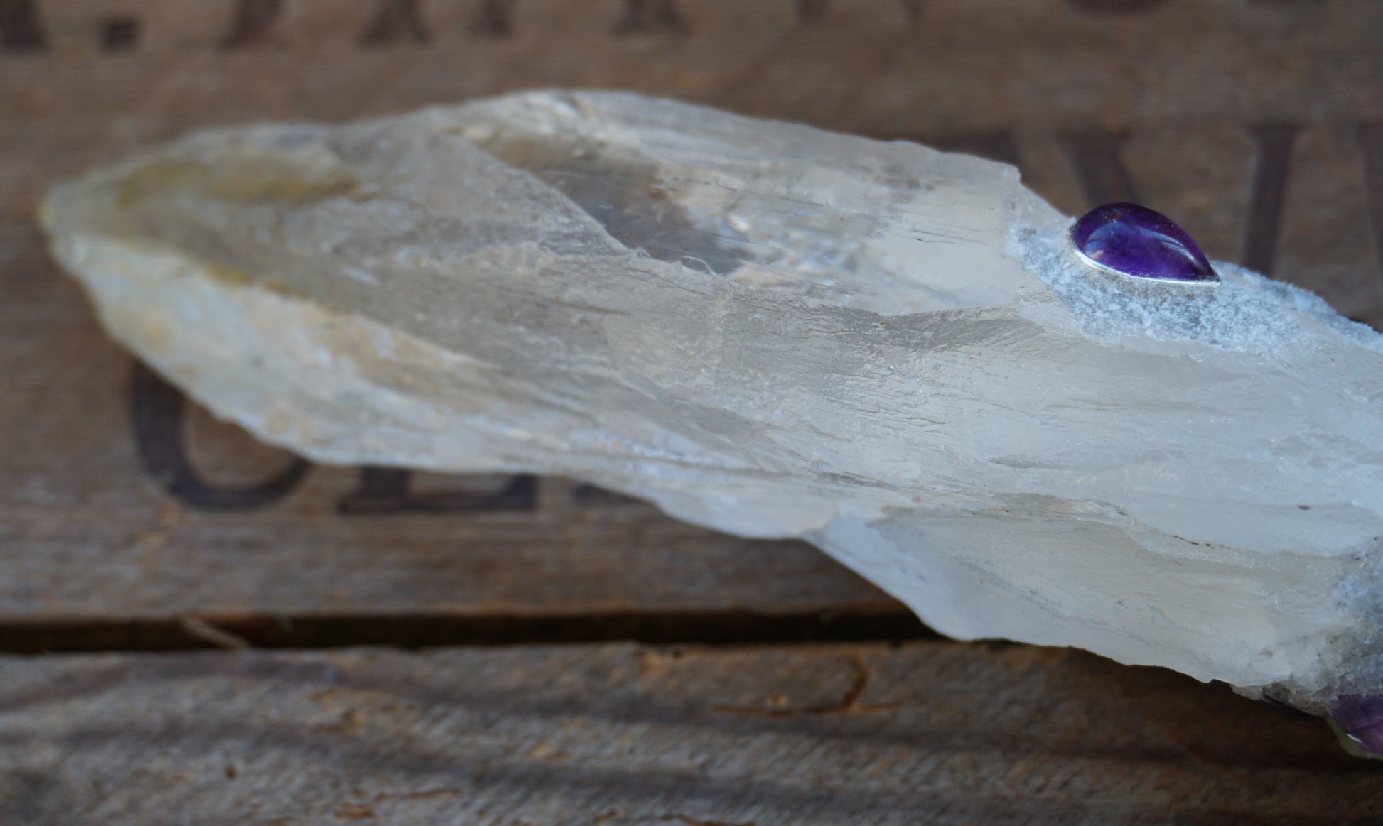 Ref.WD0218 - Crystal wand with Tibetan laser quartz crystal, moonstone dust, herkimer crystal, pink & green kunzite, labradorite, amethyst, moonstone, and danburite gemstones.