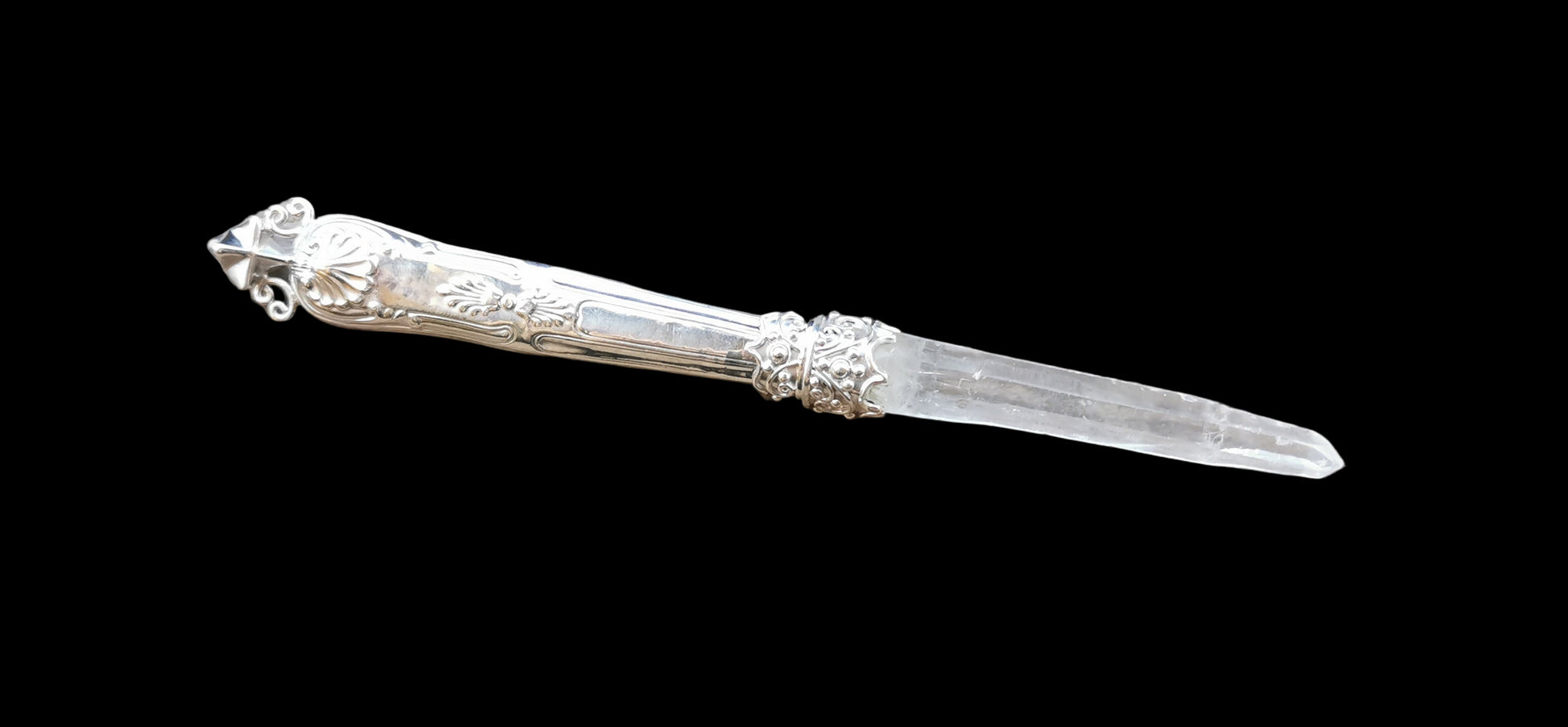 Ref.WD0512 - Silver wand with Tantric Star geometry and laser quartz crystal.
