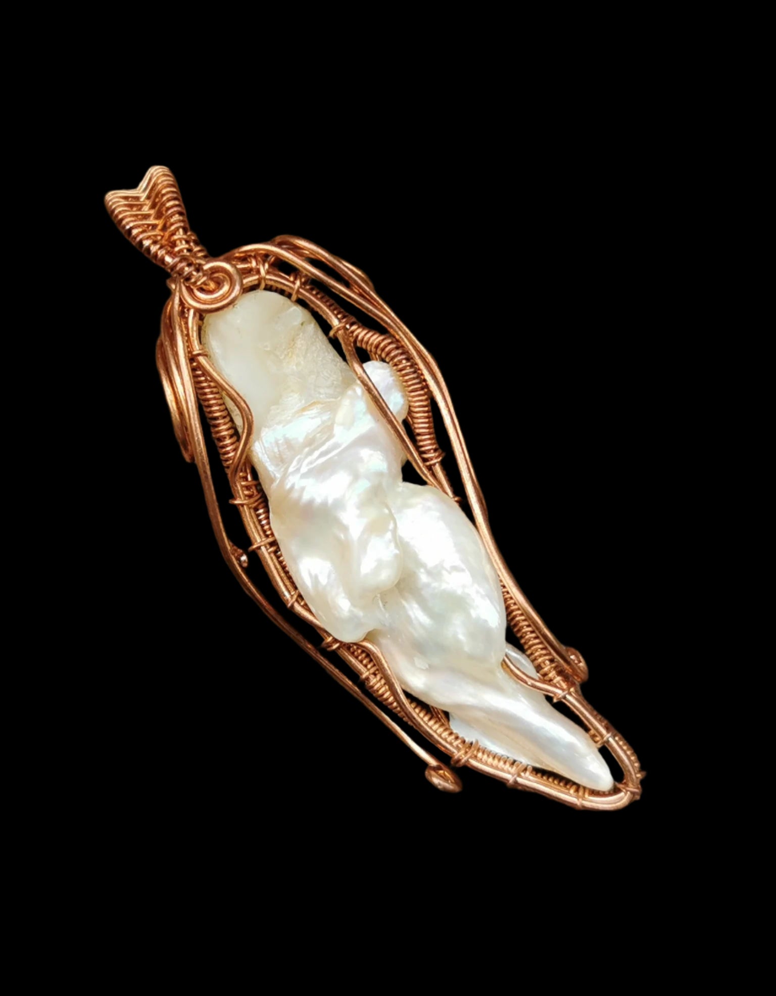 Ref.WW0102 - Wire wrap pendant with South sea's pearl.