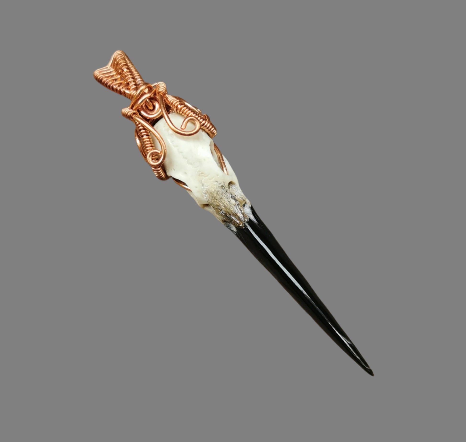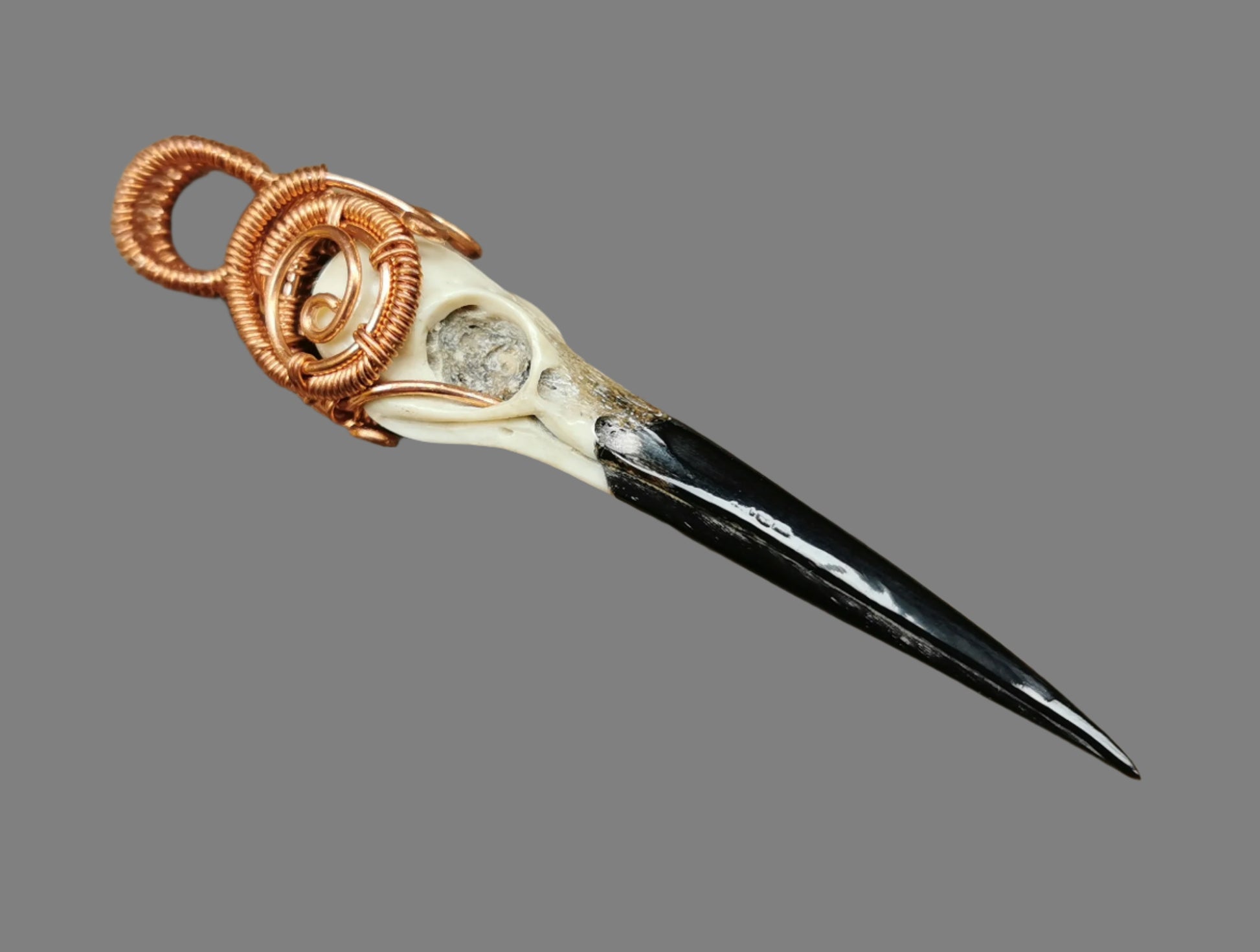 Ref.WW0103 - Wire wrap pendant with ecologically sourced deer/buffalo horn carved raven.