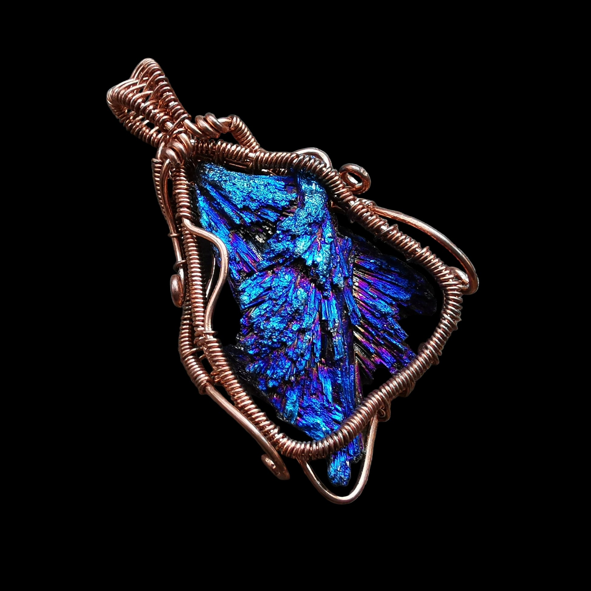 Ref.WW0127 - Wire wrap pendant with black kyanite w/titanium plating